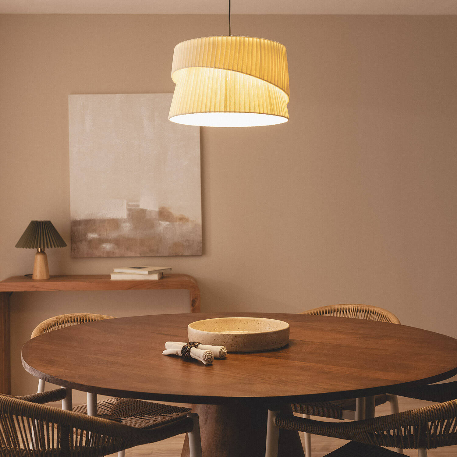 La Lámpara Colgante Lino Kiana destaca por su diseño elegante y moderno, ideal para ambientes interiores que buscan un toque cálido y natural. Su pantalla de lino beige, con un original diseño plisado y superpuesto, aporta textura y suavidad a cualquier estancia. Compatible con bombillas E27 (no incluidas), funciona con una tensión de 220-240V AC y está certificada bajo normas CE y RoHS, garantizando calidad y seguridad. Su instalación colgante permite una iluminación ambiental perfecta para comedores, salones o espacios de trabajo. Además, soporta temperaturas de -20 °C a 50 °C, asegurando durabilidad en distintas condiciones. Cuenta con protección IP20 y una garantía de 3 años, combinando estética y funcionalidad.