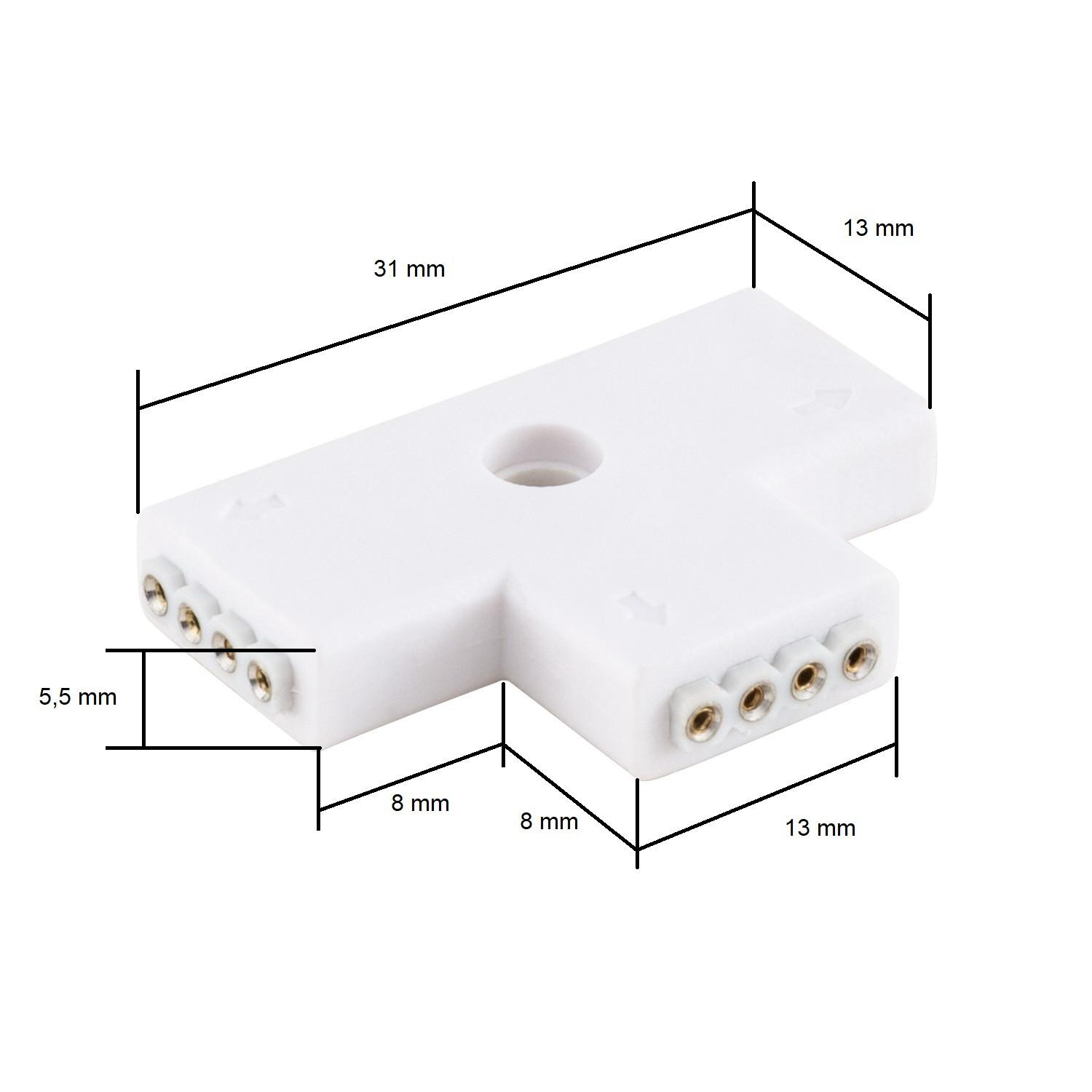 Conector Rápido Tipo 'T' Tira LED 12/24V RGB