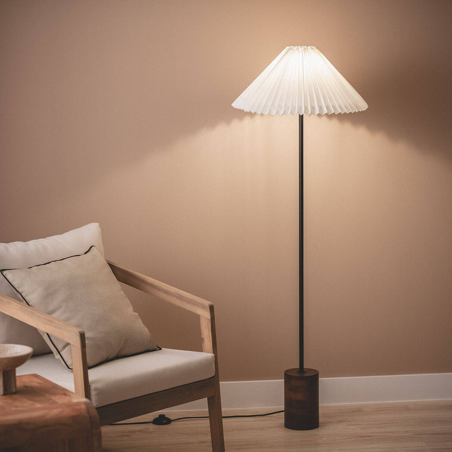 La lámpara de pie Leonessa ILUZZIA combina elegancia y funcionalidad en un diseño minimalista con base de madera natural y pantalla plisada en blanco roto. Su estructura esbelta y sofisticada aporta calidez y estilo a cualquier estancia interior, creando un ambiente acogedor y moderno. Con una potencia máxima de 60 W y casquillo E27, permite elegir la bombilla que mejor se adapte a tus necesidades de iluminación. Su interruptor de pie facilita el encendido y apagado, garantizando comodidad. Además, cuenta con protección IP20 y una garantía de 3 años, asegurando calidad y durabilidad. Ideal para salones, dormitorios o rincones de lectura que requieran una luz suave y decorativa.