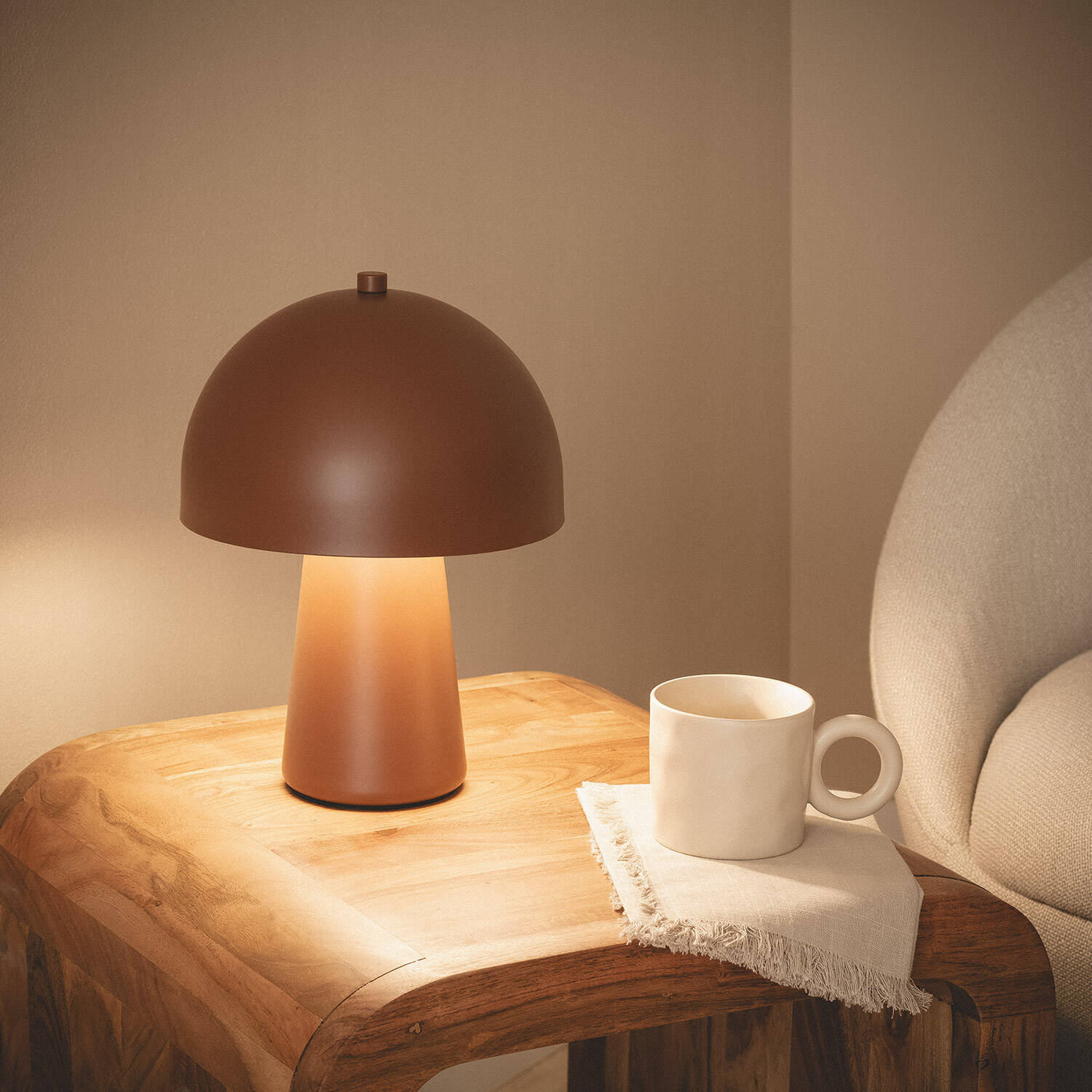 La lámpara de mesa Metal Quinga es una pieza de diseño moderno y minimalista, fabricada en metal con acabado marrón que aporta calidez y elegancia a cualquier espacio interior. Su forma redondeada recuerda a un hongo, combinando funcionalidad y estilo. Cuenta con un casquillo E27 que admite bombillas de hasta 40 W (no incluidas) y funciona a una tensión de 220-240V AC con frecuencia de 50-60 Hz. Su protección IP20 la hace ideal para uso en interiores, garantizando seguridad y durabilidad. Además, dispone de interruptor en el cable para un manejo cómodo. Certificada con CE, RoHS y UKCA, ofrece una garantía de 3 años, siendo una opción fiable para iluminar y decorar con personalidad.