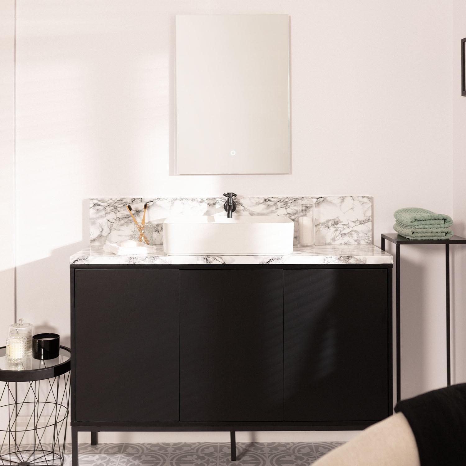 El Espejo de Baño Small Mason de 68x48 cm combina funcionalidad y diseño moderno para tu espacio. Incorpora luz LED blanca fría de 27 W con una luminosidad de 2970 lúmenes y temperatura de color de 6000K, ideal para una iluminación clara y nítida. Su control táctil permite un manejo sencillo y elegante, mientras que su protección IP44 garantiza resistencia al agua y humedad, perfecto para interiores. Con una vida útil de 50.000 horas y certificaciones CE, RoHS y UKCA, ofrece calidad y durabilidad. Su instalación en superficie es práctica y su acabado minimalista aporta un toque contemporáneo y luminoso a cualquier baño. Además, cuenta con 3 años de garantía para mayor tranquilidad.