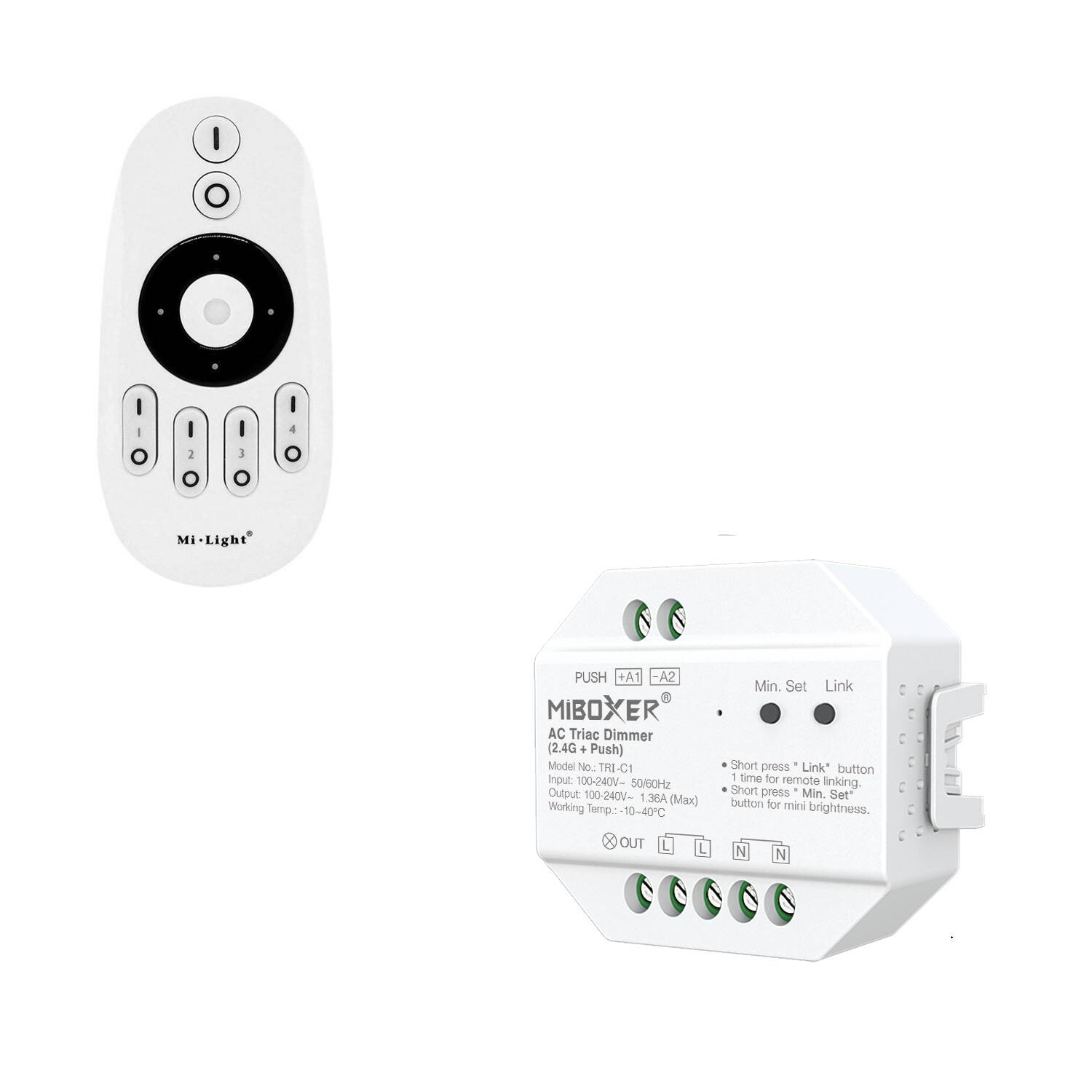 El Regulador LED TRIAC + Mando RF 4 Zonas MiBoxer es un dispositivo compacto y eficiente para el control de iluminación interior. Con una potencia máxima de 300 W y una corriente de 1,36 A, permite regular la intensidad de luces LED mediante tecnología TRIAC, garantizando un ajuste suave y preciso. Su mando a distancia inalámbrico opera en 4 zonas independientes, facilitando el manejo desde cualquier punto hasta 30 metros. Fabricado en material PC blanco, destaca por su resistencia y diseño discreto. Funciona en un rango de temperatura de -20 °C a 50 °C, cuenta con certificaciones CE, RoHS y UKCA, y ofrece protección IP20. Ideal para ambientes domésticos o profesionales, incluye una garantía de 3 años para mayor confianza y durabilidad.