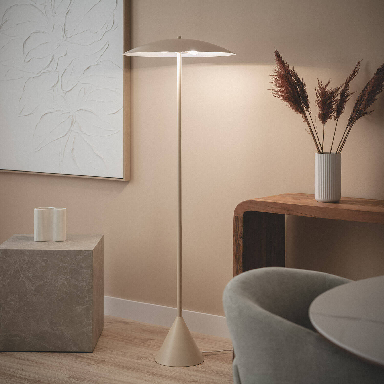 La lámpara de pie Metal Irmah destaca por su diseño minimalista y elegante en color beige, fabricada en metal resistente. Ideal para interior, cuenta con dos puntos de luz que utilizan bombillas E14 de hasta 20W, proporcionando una iluminación cálida y acogedora. Su estructura robusta soporta temperaturas de trabajo entre -20 °C y 50 °C, garantizando durabilidad y funcionalidad. Con certificaciones CE y RoHS, ofrece seguridad y calidad. Perfecta para salones, dormitorios o espacios de lectura, esta lámpara combina estilo y practicidad, además de incluir una garantía de 3 años. Su protección IP20 asegura un uso seguro en interiores, mientras que su diseño sencillo se adapta a cualquier decoración moderna.