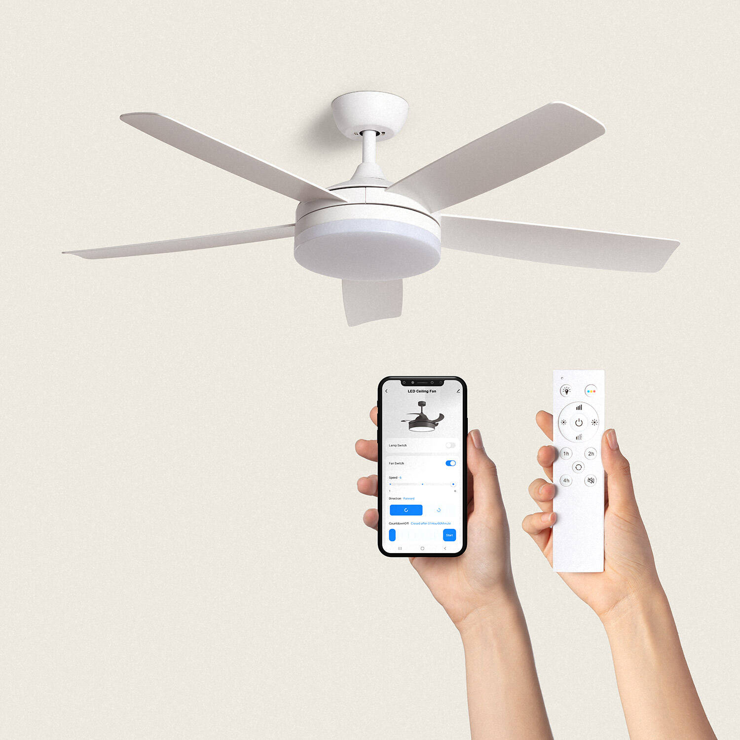 El ventilador de techo silencioso Patroclo Blanco de TECHBREY combina eficiencia y diseño moderno con un diámetro de 132 cm y motor DC de 45 W que garantiza un rendimiento óptimo y bajo consumo. Su sistema de 5 aspas ofrece hasta 6 velocidades ajustables entre 114 y 206 RPM, con un nivel sonoro mínimo de 24 dB para un ambiente tranquilo. Incluye luz LED integrada de 36 W y mando a distancia para un control cómodo, además de modo verano/invierno para uso durante todo el año. Fabricado en ABS, metal y PMMA, es ideal para espacios grandes interiores y soporta temperaturas de -20 °C a 50 °C. Certificado CE, RoHS y UKCA, con garantía de 3 años.