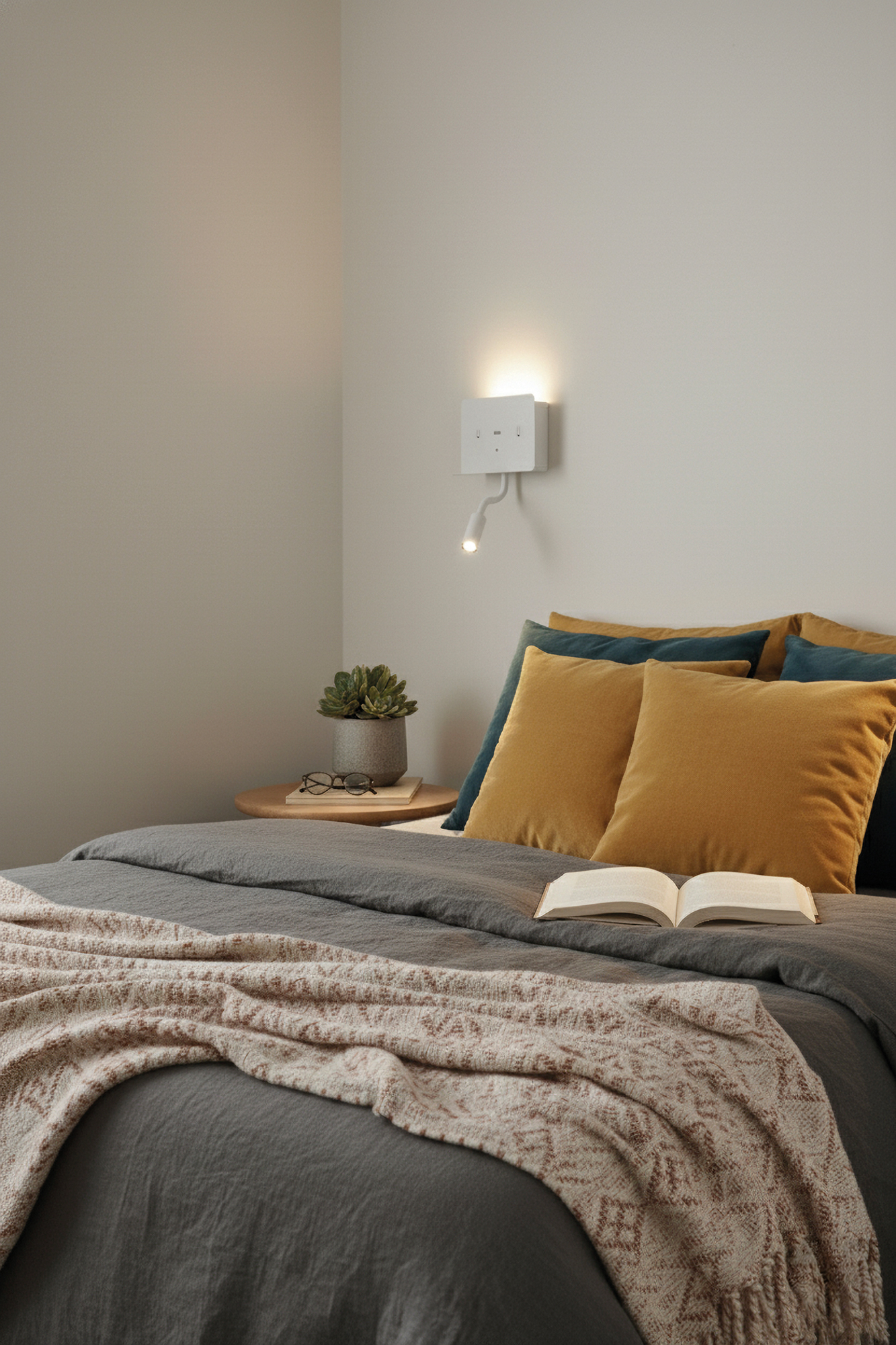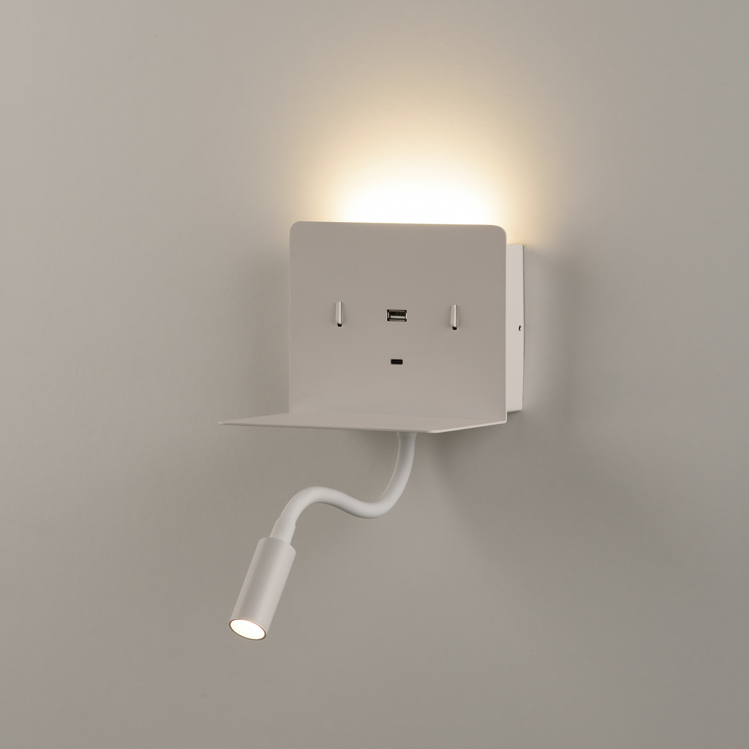Calma Aplique 16/3836 Blanco texturado, LED 6W 3000K 630lm + 3W 3000K 285lm, CRI90 CL.I, Dos interruptores, Con USB, USB-C, Orientable