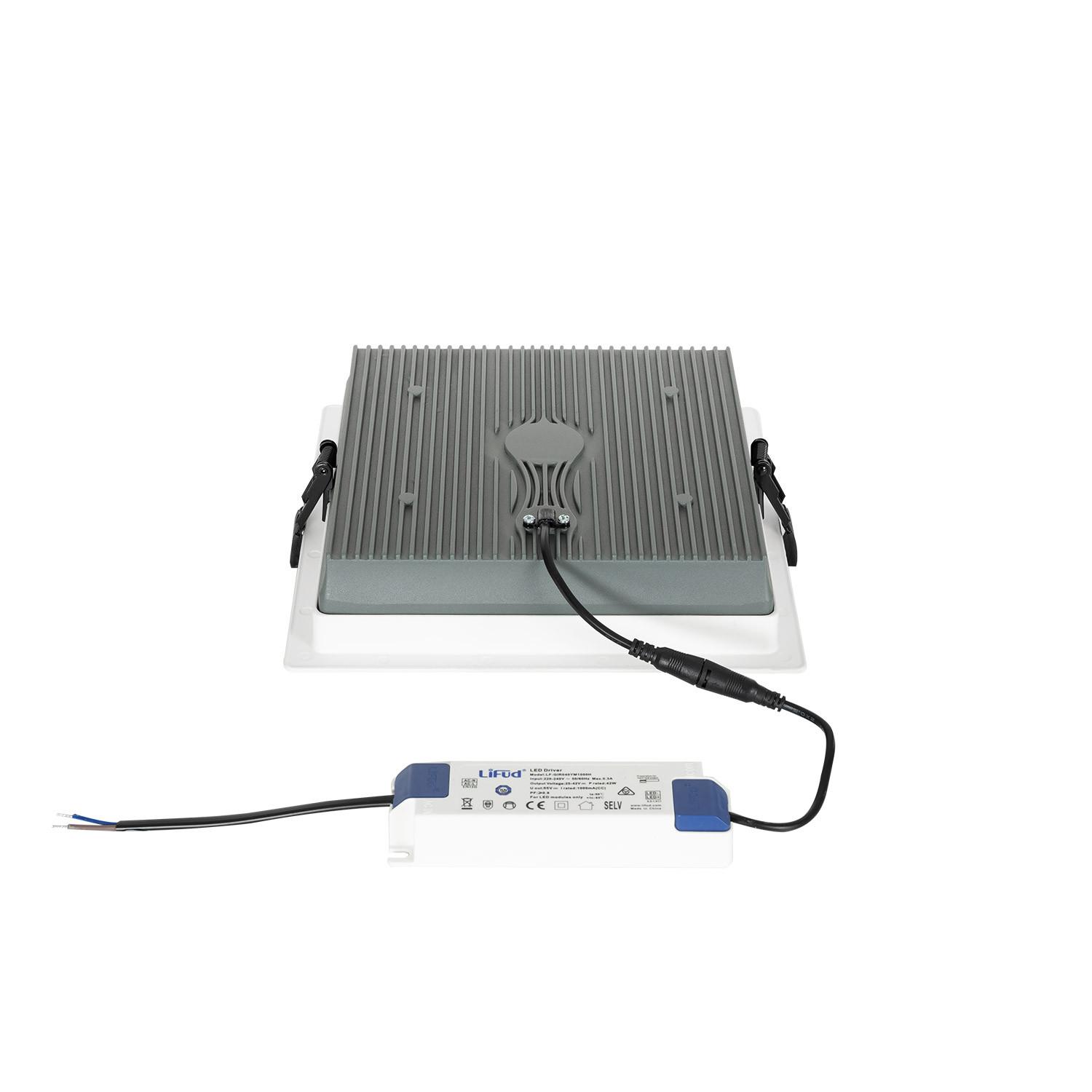 Downlight LED 40W Cuadrado SAMSUNG Aero 130 lm/W Microprismático LIFUD Corte 210x210 mm