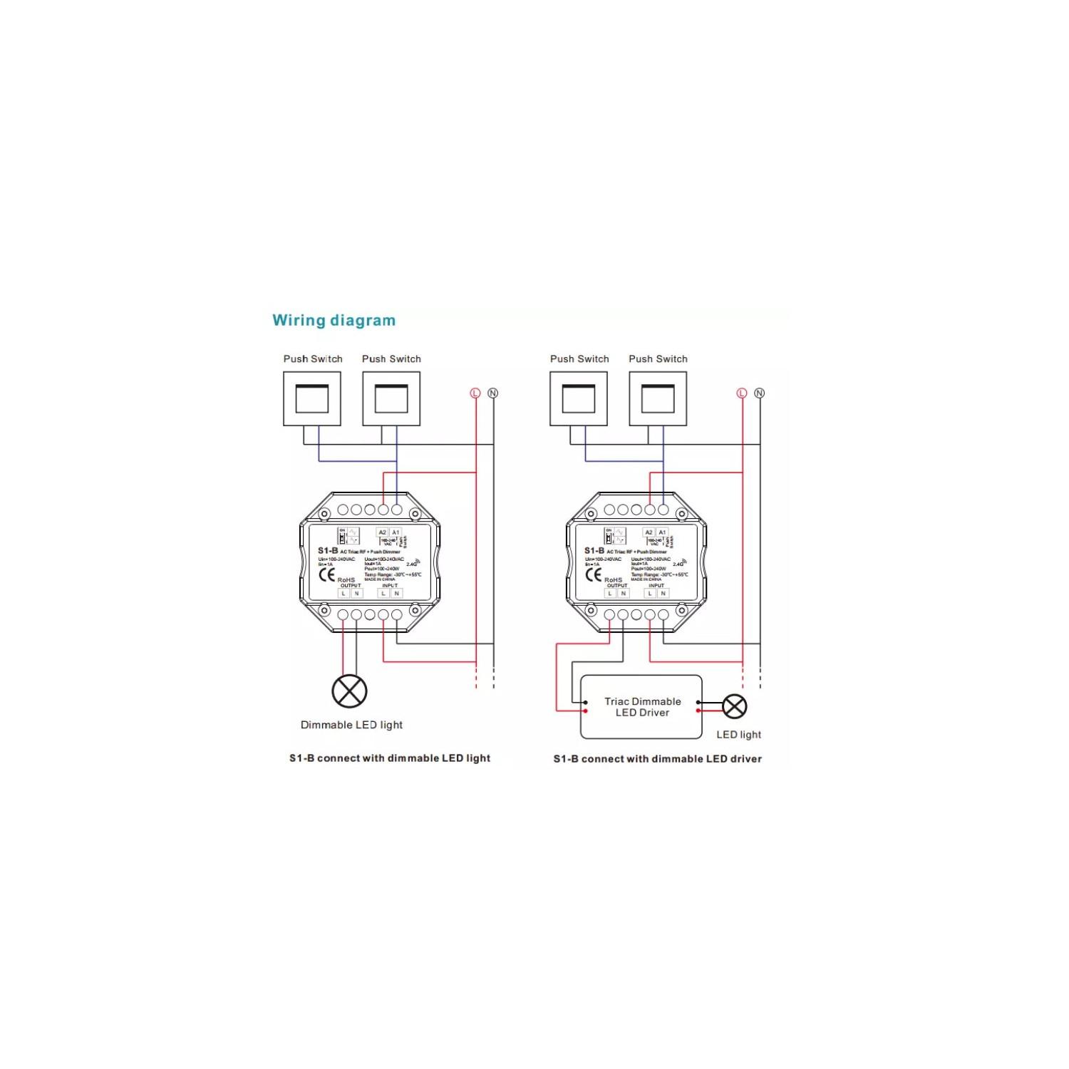 Interruptor Regulador LED TRIAC Compatible con Pulsador y Mando RF
