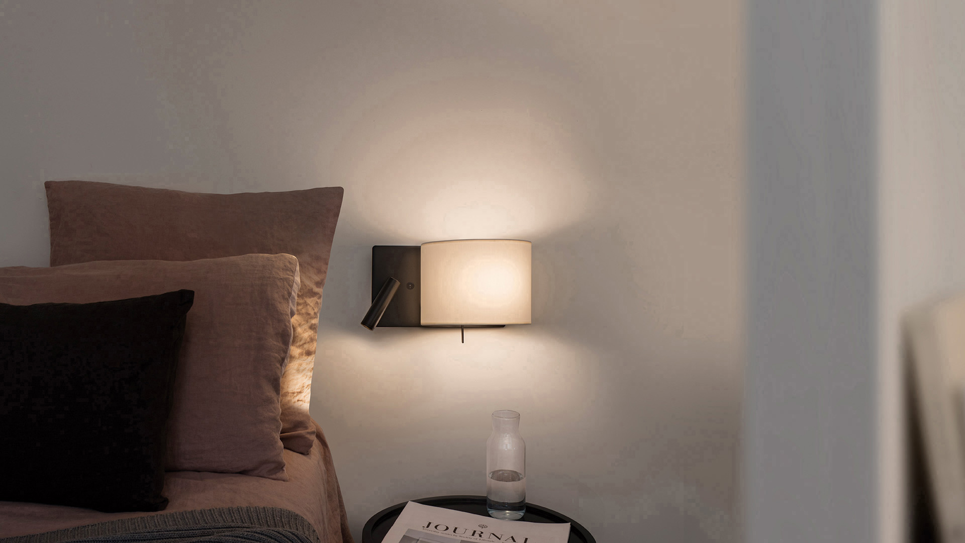 Los apliques Rum quieren aportar calidez, una luz delicada y no protagonista en dormitorios. Pretenden crear un ambiente y al mismo tiempo ser funcionales.