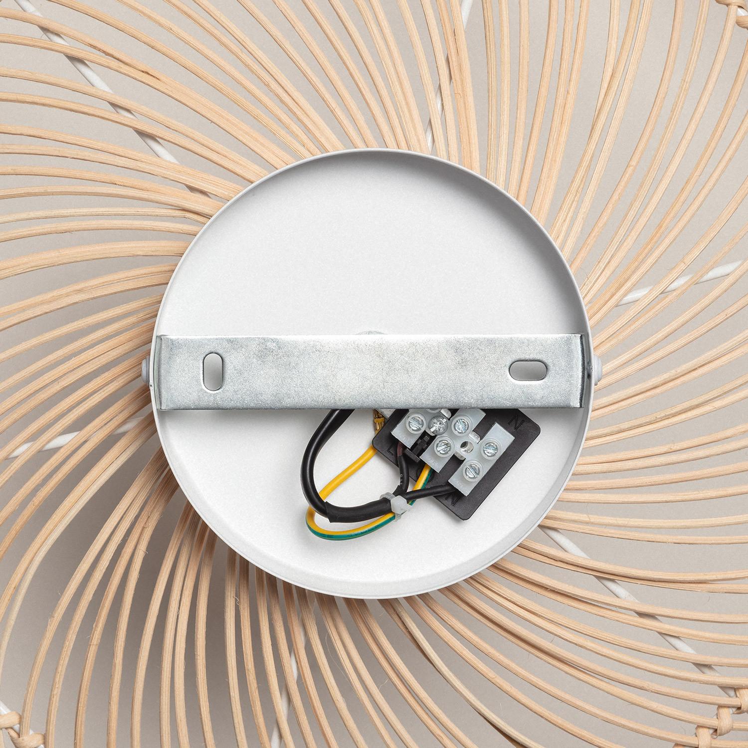 El plafón de techo Bambú Nango aporta un toque natural y elegante a cualquier estancia interior. Su estructura de ratán en color natural crea un diseño ligero y artesanal que combina a la perfección con estilos rústicos o bohemios. Está diseñado para una bombilla con casquillo E27 y soporta hasta 40 W, ofreciendo una iluminación cálida y acogedora (bombilla no incluida). Su instalación es sencilla y segura, con protección IP20 y certificado CE, RoHS y UKCA, garantizando calidad y cumplimiento normativo. Además, su resistencia a temperaturas de -20 °C a 50 °C lo hace versátil para diversas condiciones ambientales. Disfruta de un ambiente cálido y natural con este plafón sostenible y con tres años de garantía.