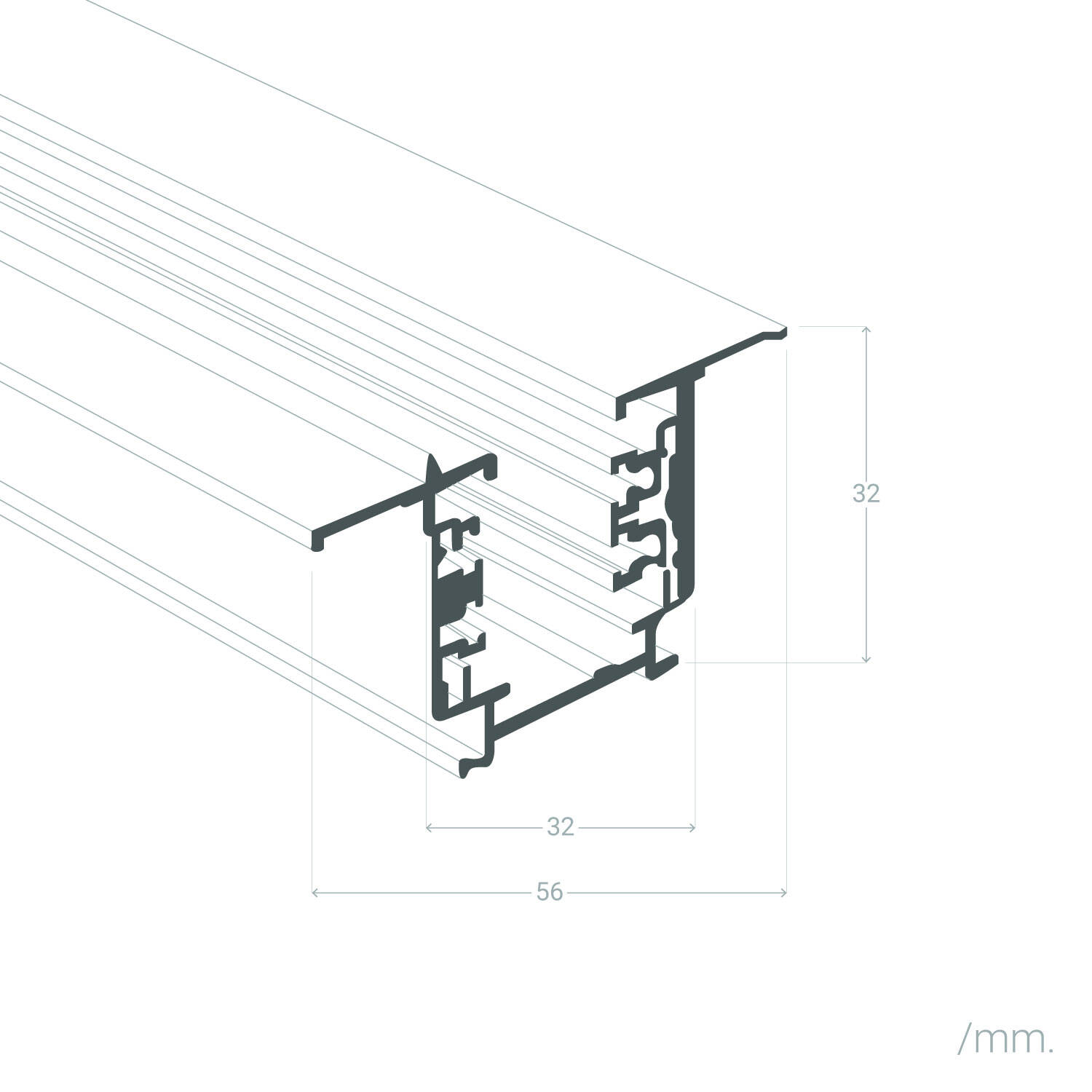 Carril Trifásico Empotrable Aluminio para Focos LED 1 Metro