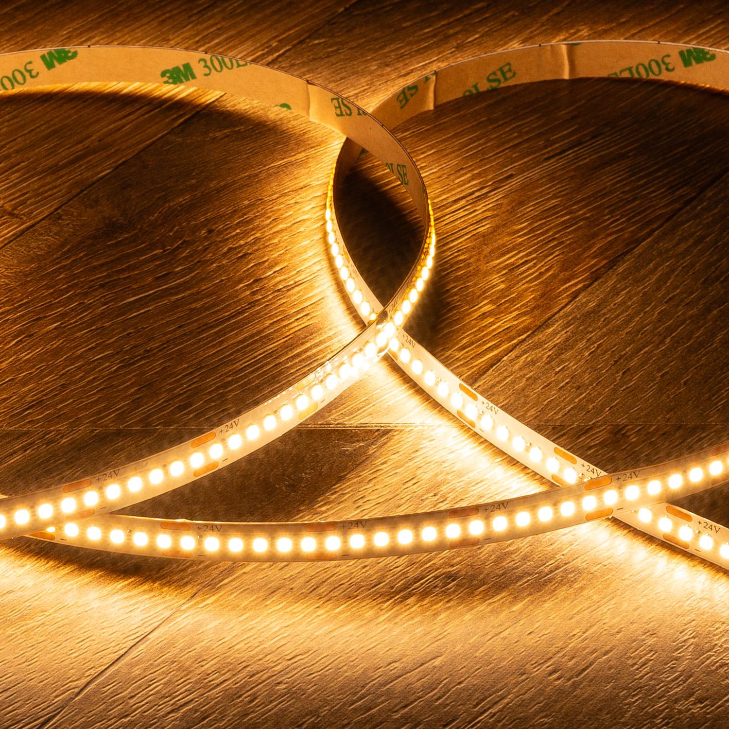 Descubre la tira LED 24V SMD con 252 LEDs por metro, que ofrece una iluminación cálida y eficiente con 1200 lúmenes por metro y un consumo de solo 12W/m. Su diseño ultra delgado de 8 mm y la tecnología FreeCut permiten cortes precisos cada 0,10 cm, adaptándose a cualquier proyecto de iluminación interior. Con un índice de reproducción cromática (CRI) de 90, garantiza una luz natural y agradable, ideal para ambientes acogedores. Su temperatura de color de 2700K aporta calidez y confort visual. Certificada con CE, RoHS y UKCA, esta tira LED cuenta con una vida útil de 40.000 horas y una garantía de 3 años, asegurando calidad y durabilidad en cada instalación.