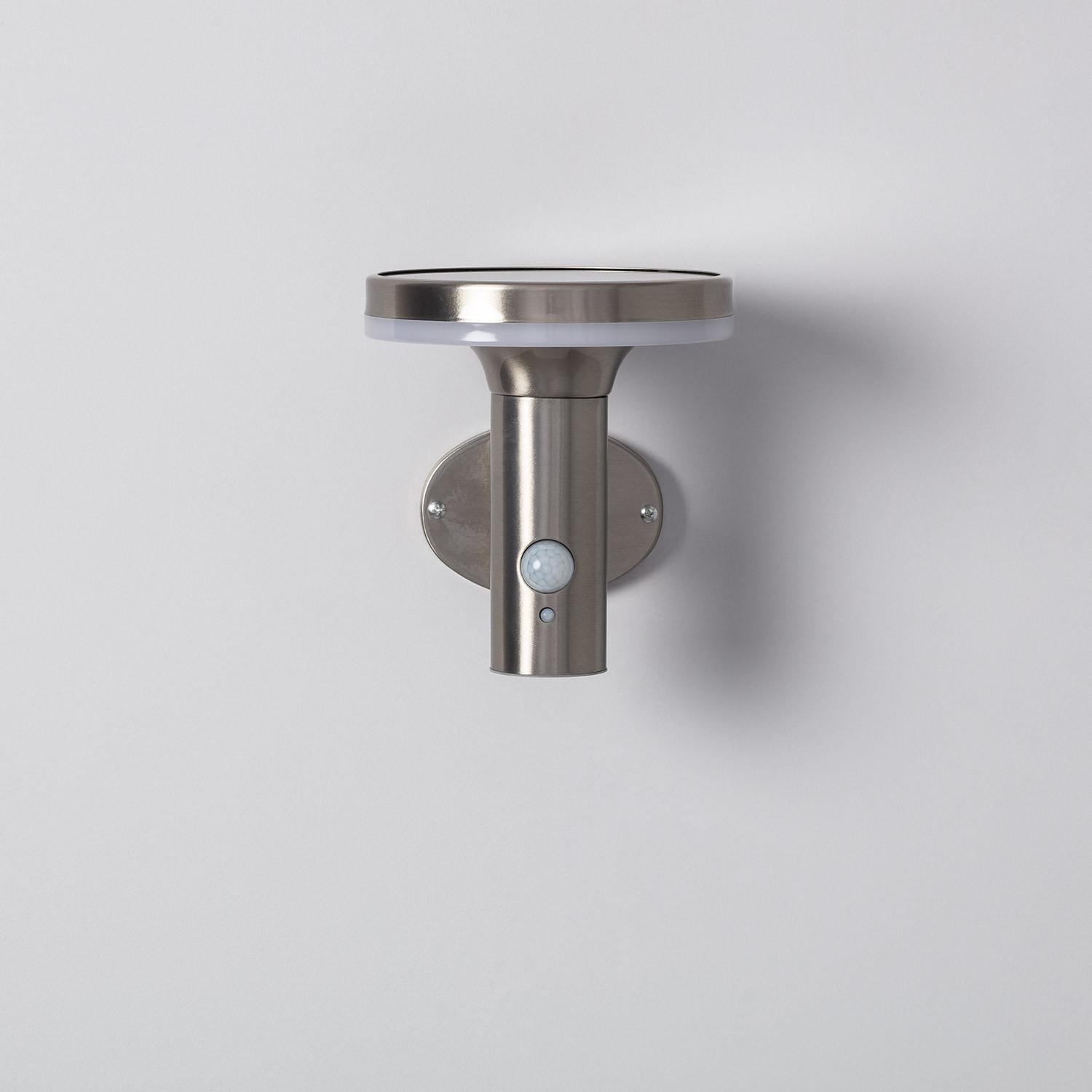 Aplique de Pared Exterior Solar LED Helios Inox con Detector de Movimiento PIR