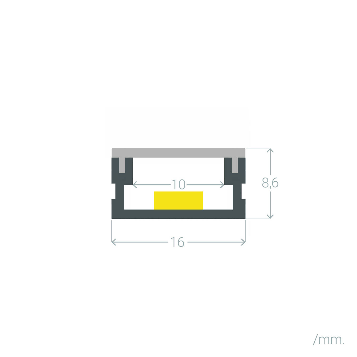 Perfil Aluminio Superficie 2m para Tira LED hasta 10 mm