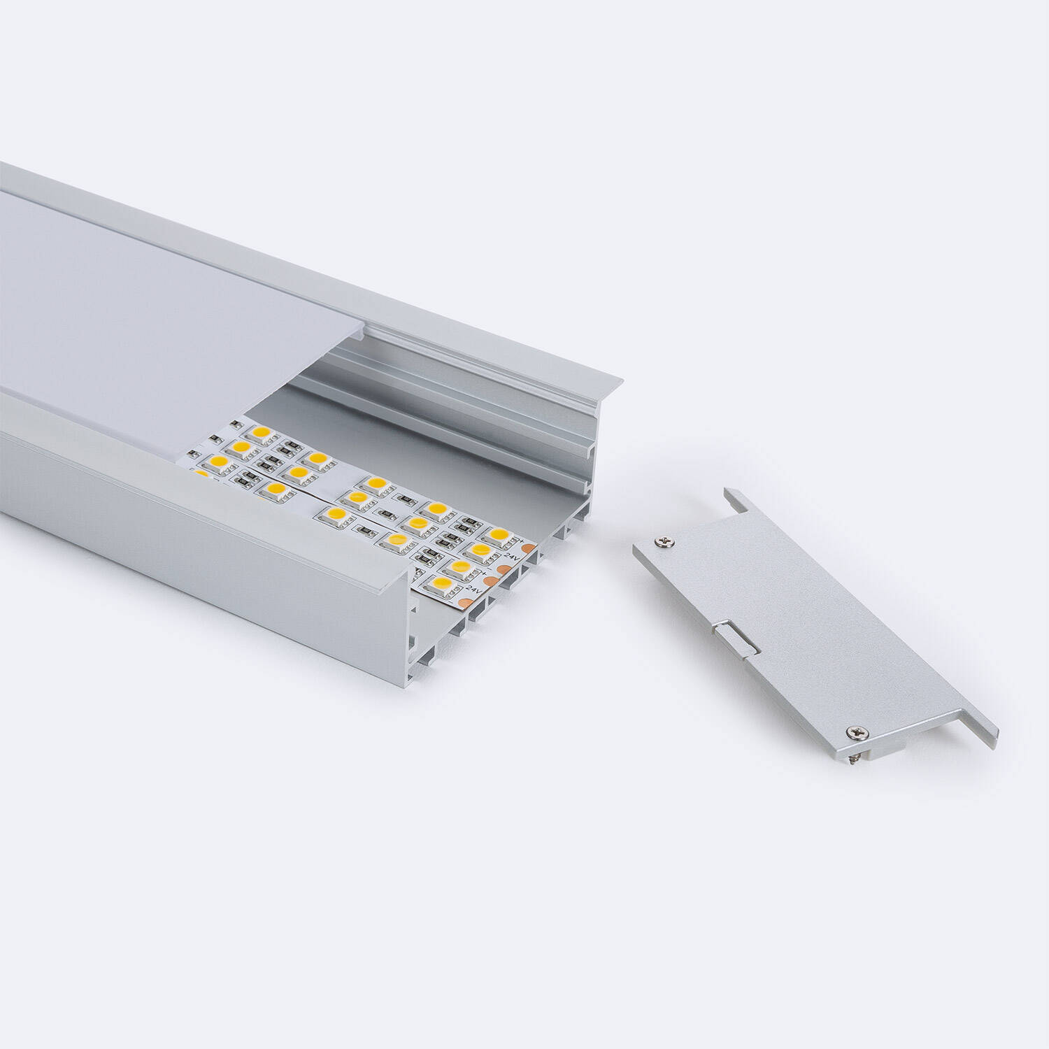 Perfil Aluminio Empotrable XL para Tiras LED hasta 60mm con Tapa Continua