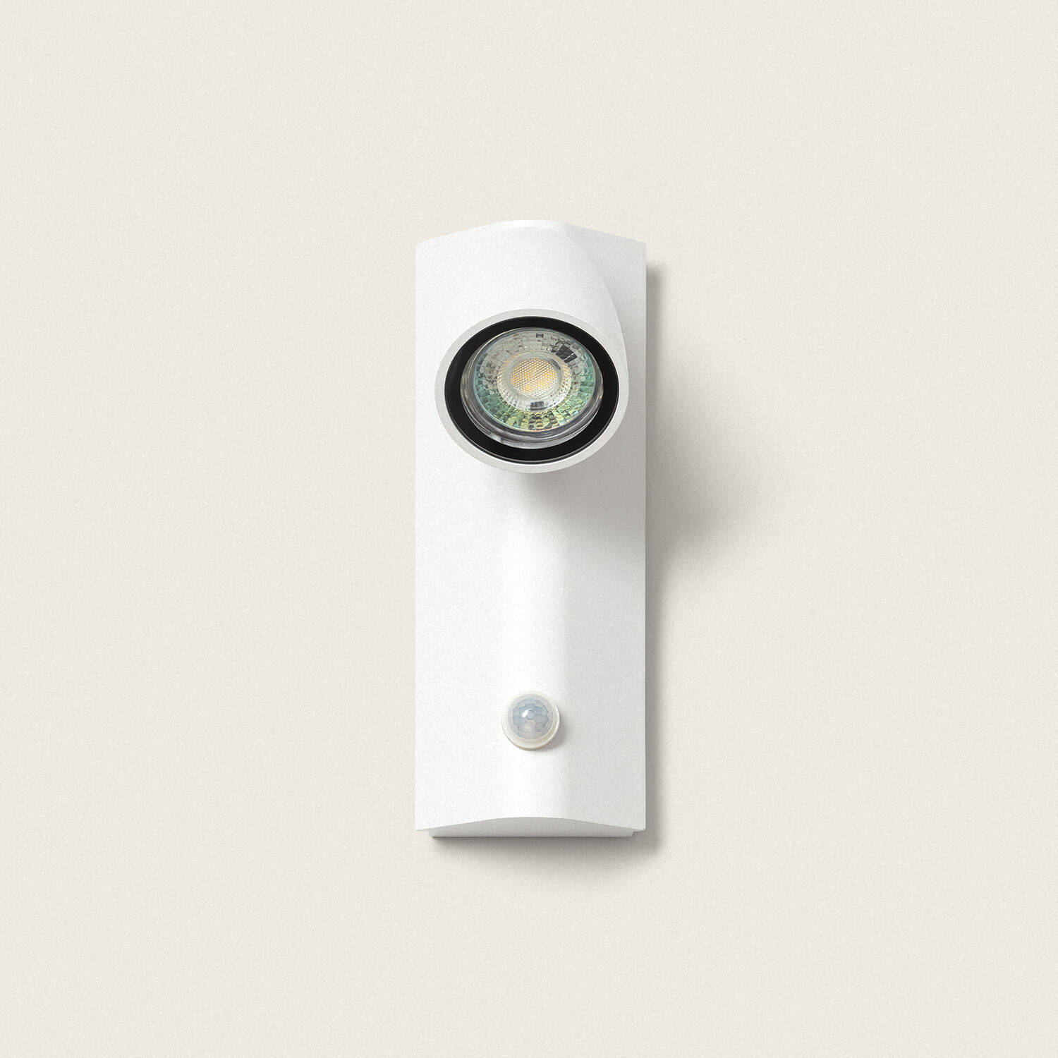 Este aplique de pared exterior Abel, fabricado en aluminio resistente, combina funcionalidad y diseño moderno. Equipado con detector de movimiento, ofrece una iluminación eficiente y segura para exteriores, activándose solo cuando detecta presencia. Su casquillo GU10 permite elegir la bombilla que mejor se adapte a tus necesidades (no incluida). Con protección IP65 e IK06, garantiza resistencia al agua y golpes, ideal para ambientes exteriores exigentes. Funciona con una potencia máxima de 10W y soporta temperaturas desde -20 °C hasta 50 °C, asegurando durabilidad en distintas condiciones climáticas. Su ángulo de apertura de 24º permite una iluminación focalizada y precisa. Disponible en color blanco, es fácil de instalar en superficie y aporta un toque de elegancia a cualquier fachada o jardín. Además, cuenta con certificado CE y RoHS y 3 años de garantía.