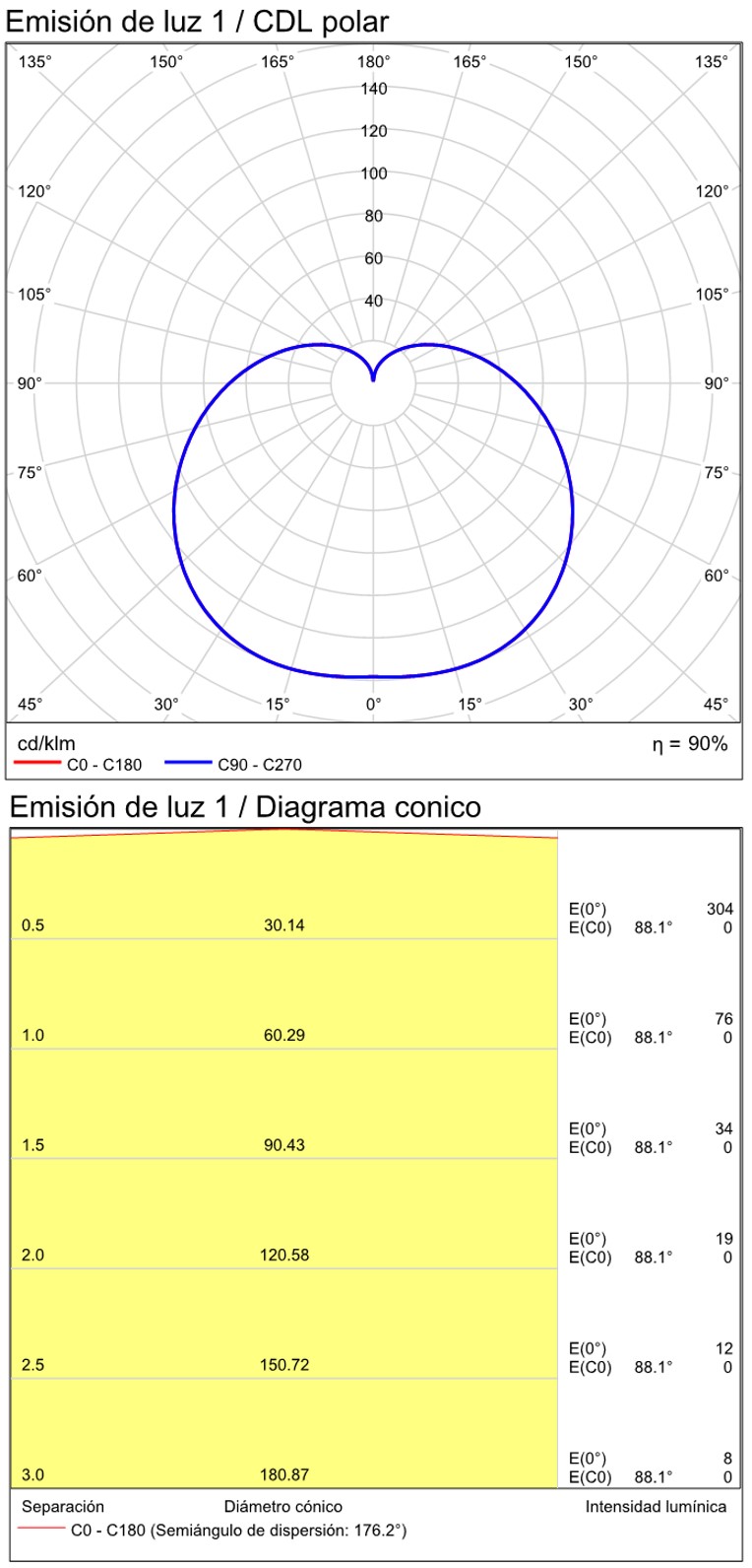 Especificaciones y datos fotométricos