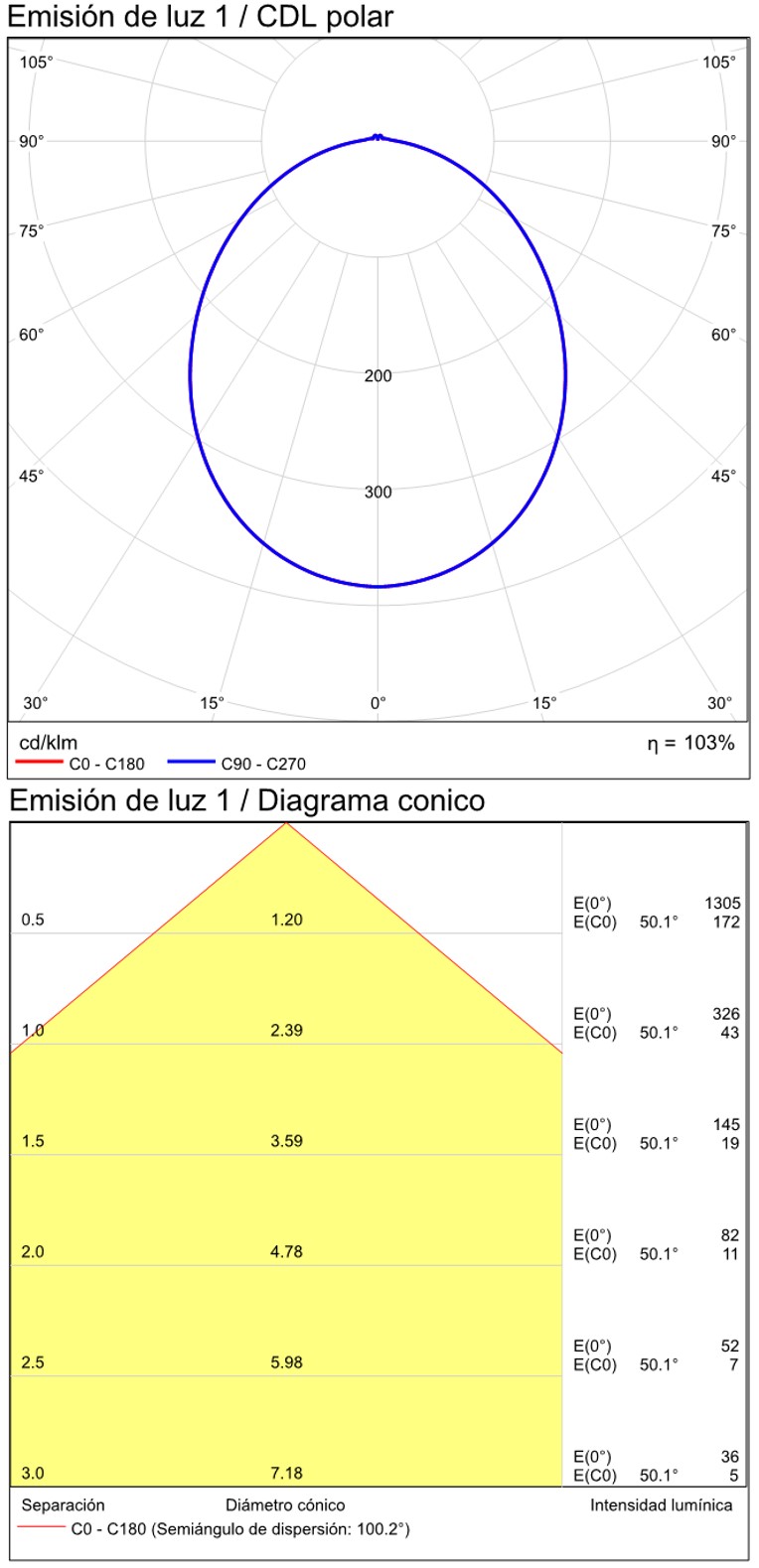 Especificaciones y datos fotométricos