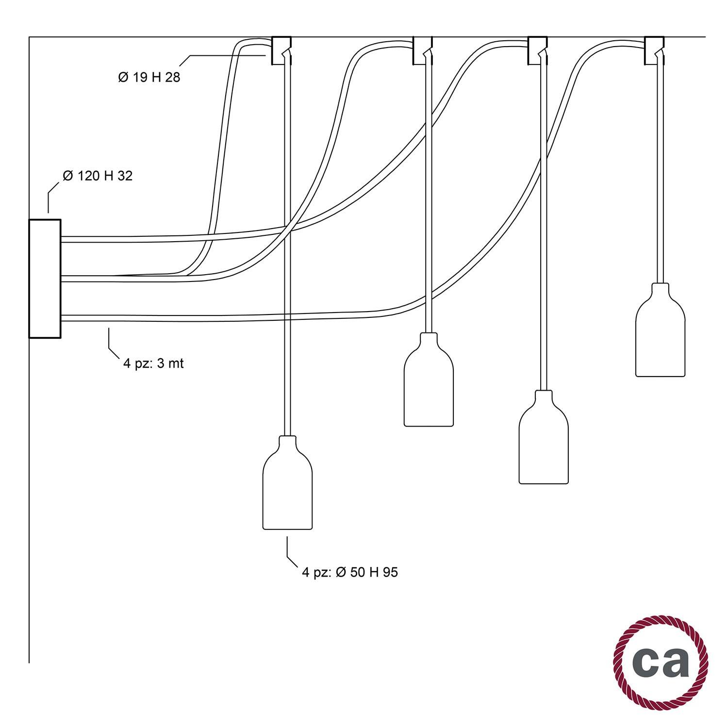 La lámpara colgante Spider de Creative-Cables combina diseño y funcionalidad con un estilo moderno y sofisticado. Con cuatro puntos de luz y cables textiles en color wengué suspendidos desde un soporte central, crea un efecto visual dinámico que aporta carácter a cualquier espacio interior. Fabricada en PC, esta lámpara admite bombillas con casquillo E27 (no incluidas) y soporta una potencia máxima de 40 W. Ideal para ambientes que buscan una iluminación personalizada y versátil, su diseño textil y madera se integra perfectamente en decoraciones contemporáneas o industriales. Además, cuenta con certificación CE y una garantía de 3 años, asegurando calidad y durabilidad. Perfecta para salones, comedores o zonas de trabajo.