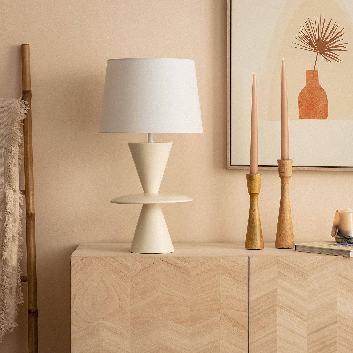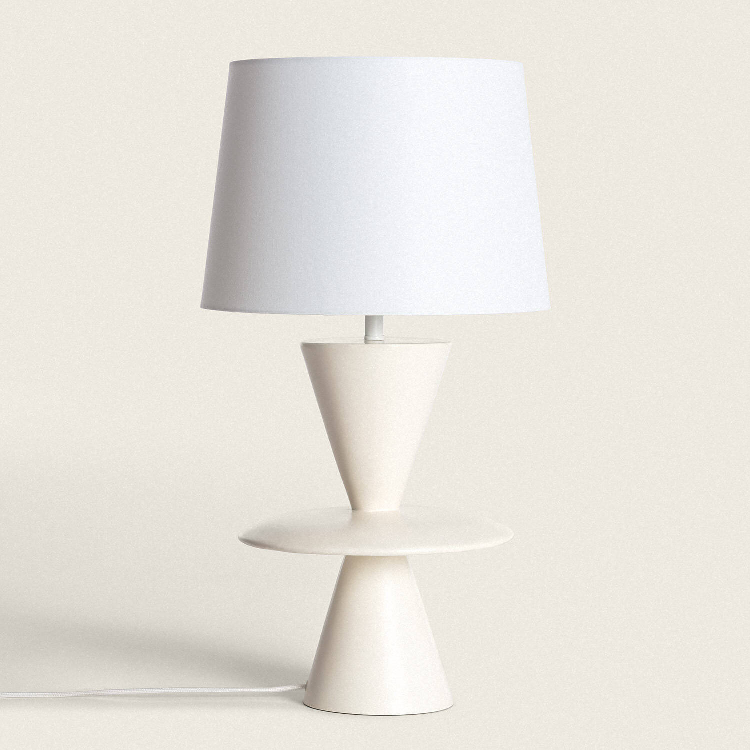 La lámpara de mesa Wismar destaca por su diseño minimalista y elegante en color blanco roto, fabricada en resina de alta calidad que aporta durabilidad y estilo. Su estructura geométrica, con formas cónicas y una base amplia, crea un equilibrio visual perfecto para cualquier espacio interior. Equipada con casquillo E27, permite el uso de bombillas de hasta 40W para una iluminación cálida y acogedora. Apta para ambientes con temperaturas entre -20 °C y 50 °C, cuenta con certificaciones CE, RoHS, UKCA y VDE que garantizan seguridad y calidad. Ideal para salones, dormitorios o zonas de lectura, esta lámpara combina funcionalidad y estética, ofreciendo una pieza decorativa que realza la atmósfera de tu hogar con un toque contemporáneo.