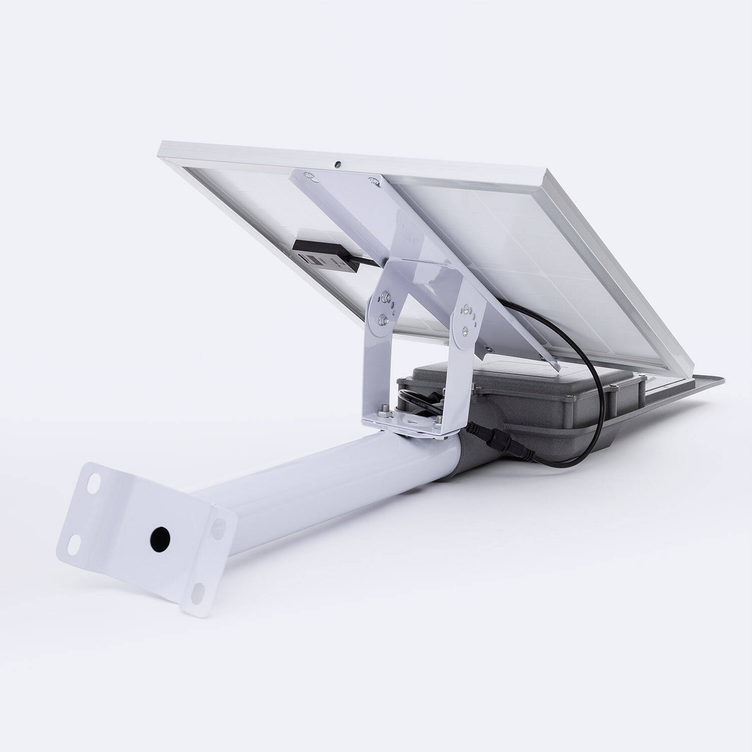 La Farola LED Solar Naxus ofrece una potente iluminación de 3500 lúmenes con una eficiencia lumínica de 140 lm/W, ideal para alumbrado exterior sostenible. Con 66 LEDs de luz blanco neutro (4000K), garantiza una iluminación clara y uniforme gracias a su óptica asimétrica 70ºx140º. Fabricada en aluminio y policarbonato, cuenta con protección IP65 para resistir condiciones ambientales extremas desde -20 °C hasta 50 °C. Funciona con una potencia de 25 W y tiene una vida útil de 40.000 horas, asegurando durabilidad y bajo mantenimiento. Incluye mando a distancia para un control cómodo. Su diseño en negro combina funcionalidad y estética, siendo una solución eficiente y ecológica para espacios públicos y urbanos. Certificada CE, RoHS y UKCA.