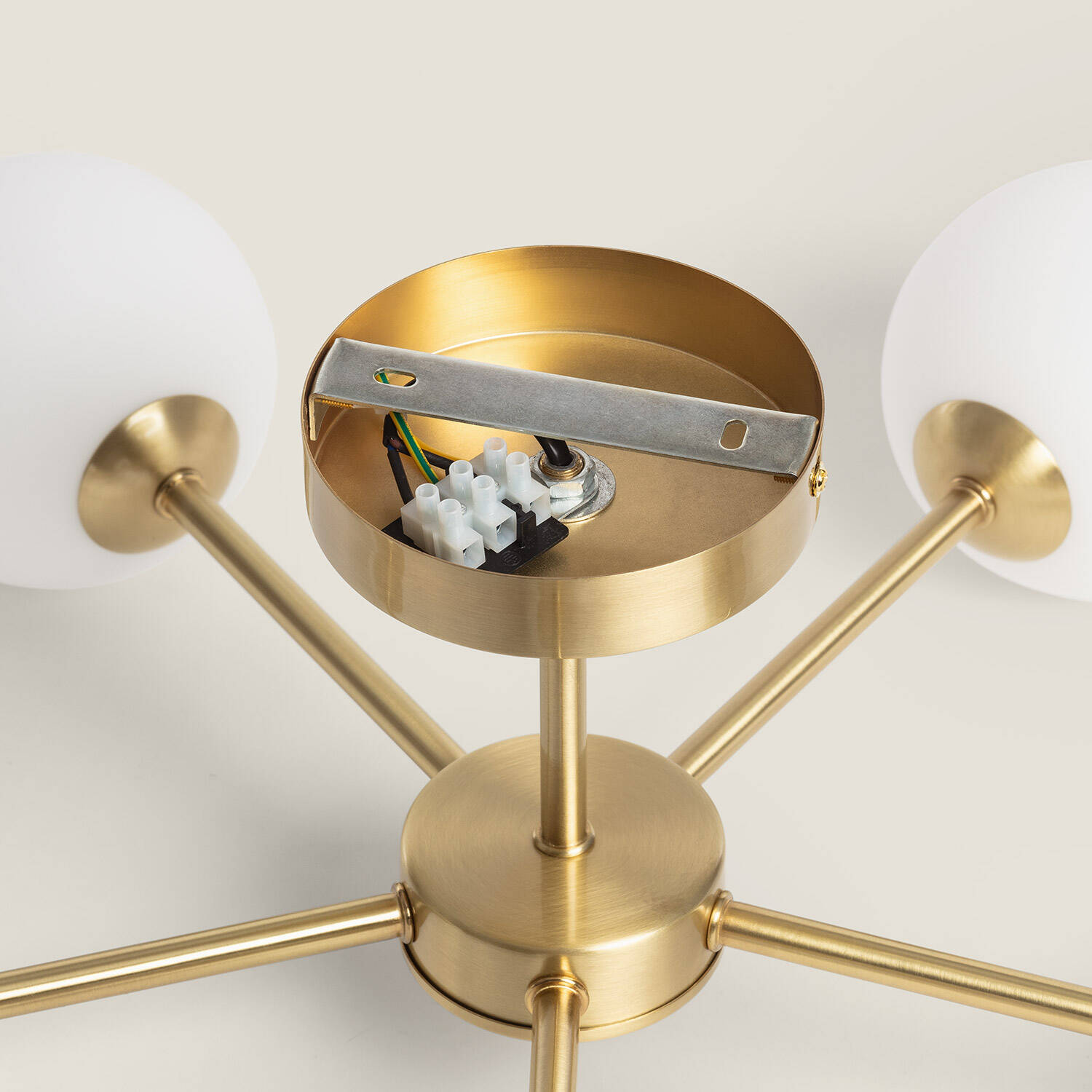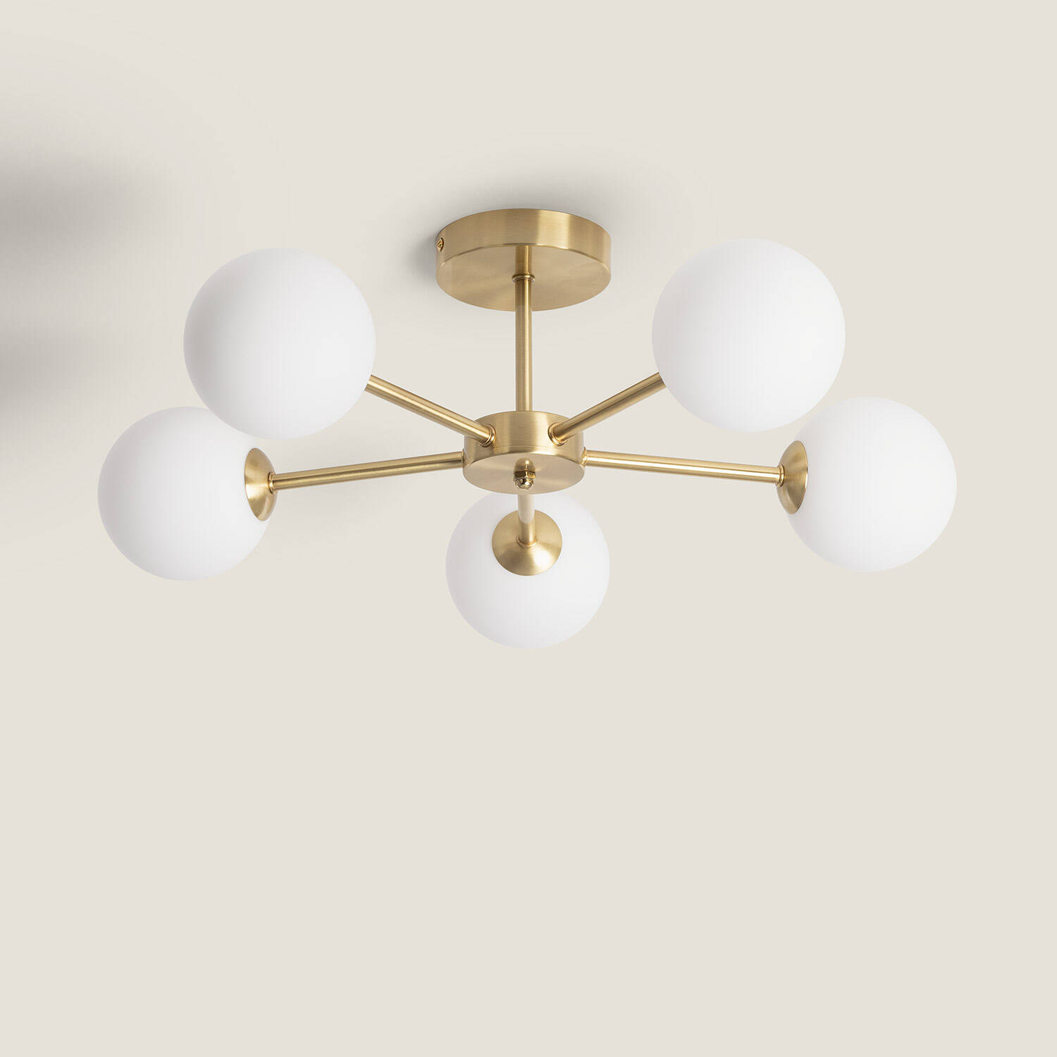 La lámpara de techo Moonlight Brass combina elegancia y funcionalidad con su estructura en metal dorado y cinco focos de cristal opalino. Su diseño moderno y sofisticado aporta un toque cálido y luminoso a cualquier estancia interior. Compatible con bombillas G9 de hasta 10 W (no incluidas), ofrece una iluminación uniforme y decorativa, ideal para salones, comedores o dormitorios. Su instalación en superficie es sencilla y segura, cumpliendo con los certificados CE y RoHS. Con protección IP20 y clase de aislamiento II, garantiza durabilidad y seguridad. Además, cuenta con una garantía de 3 años, asegurando calidad y confianza en un producto que realza cualquier ambiente con estilo y luminosidad.