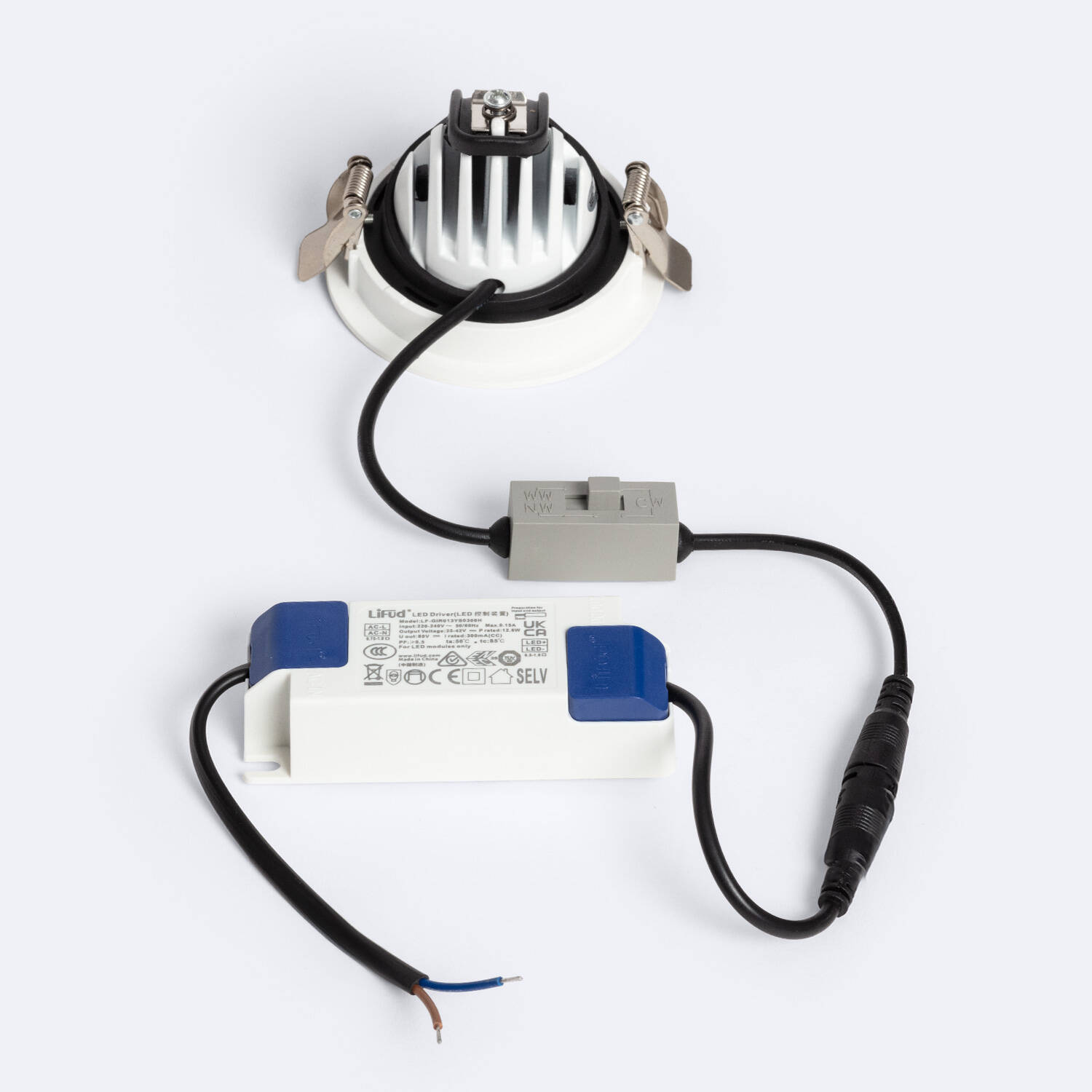 Downlight LED 10W Circular Direccionable Chip OSRAM CCT Seleccionable 120 lm/W LIFUD Corte Ø 80 mm