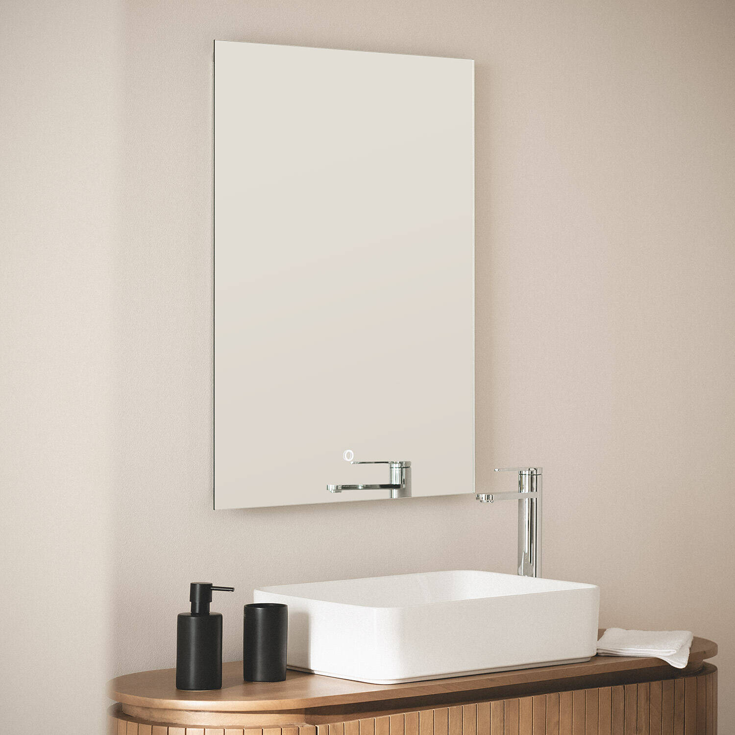 El Espejo Baño con Luz LED Medium Mason de 78x58 cm combina funcionalidad y diseño moderno para cualquier baño. Cuenta con una potente iluminación LED de 32 W que ofrece 3500 lúmenes en luz blanco frío (6000K), ideal para un reflejo nítido y realista. Su regulación táctil permite un control fácil y cómodo de la luz, mientras que su protección IP44 garantiza resistencia a la humedad, perfecto para ambientes interiores. Con una vida útil de hasta 50.000 horas y certificaciones CE, RoHS y UKCA, este espejo es una solución duradera y segura. Su instalación en superficie y acabado minimalista aportan elegancia y practicidad a tu espacio. Además, incluye una garantía de 3 años.