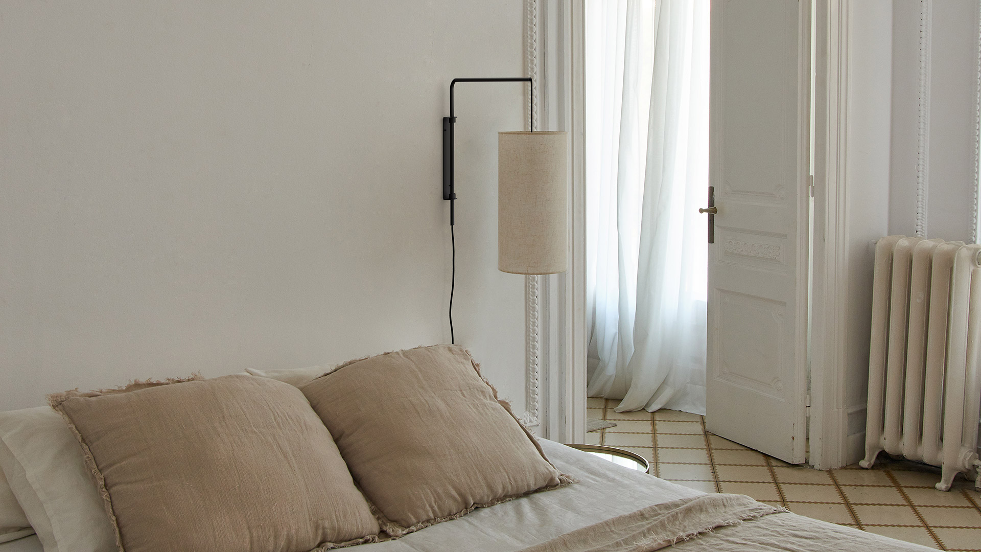 Hemos rediseñado las lámparas de pared Arco incorporando nuevas dimensiones del brazo y nuevas formas y acabados de las pantallas. En esta nueva versión el soporte se fija directamente a la pared y la lámpara se conecta a través de dos sistemas diferentes, con conexión directa a través de un florón desplazado o mediante una conexión enchufable.
