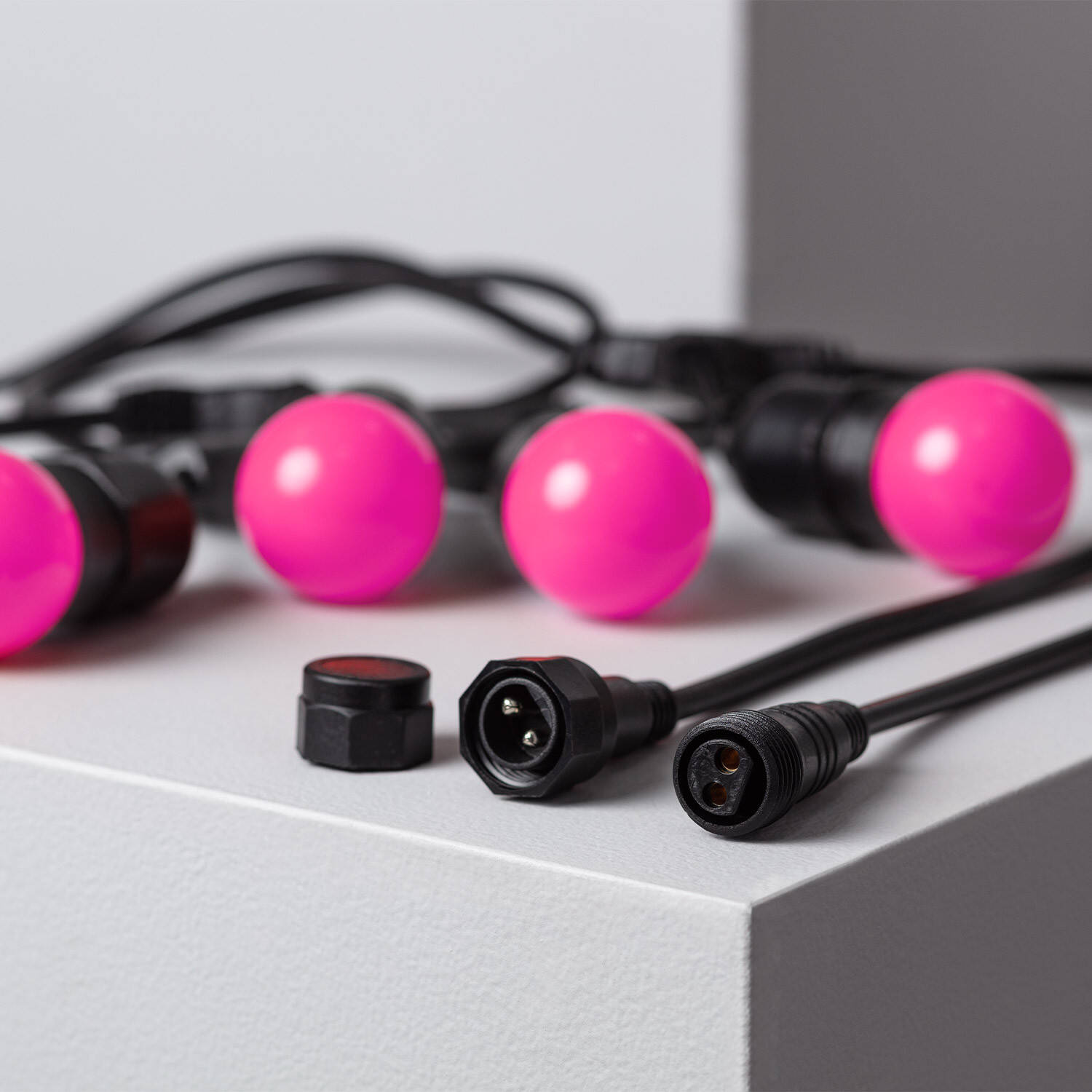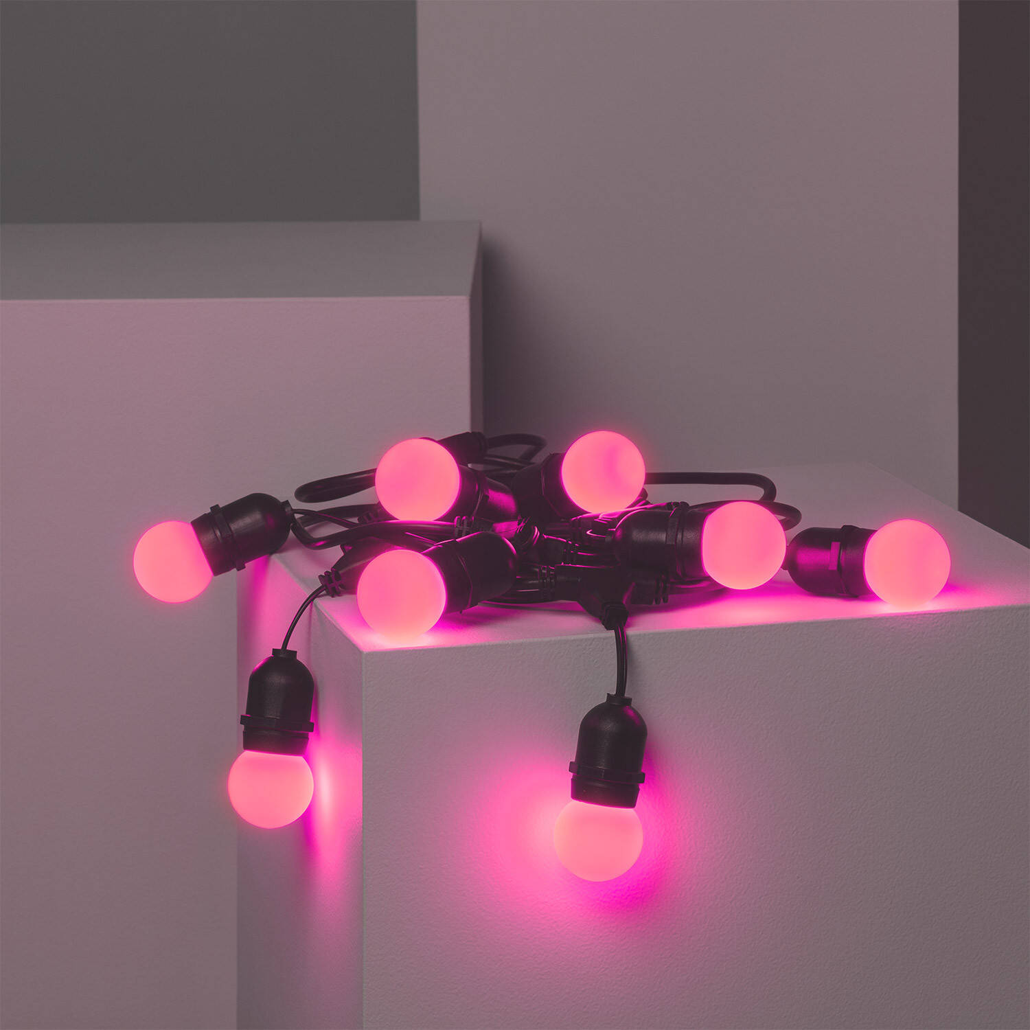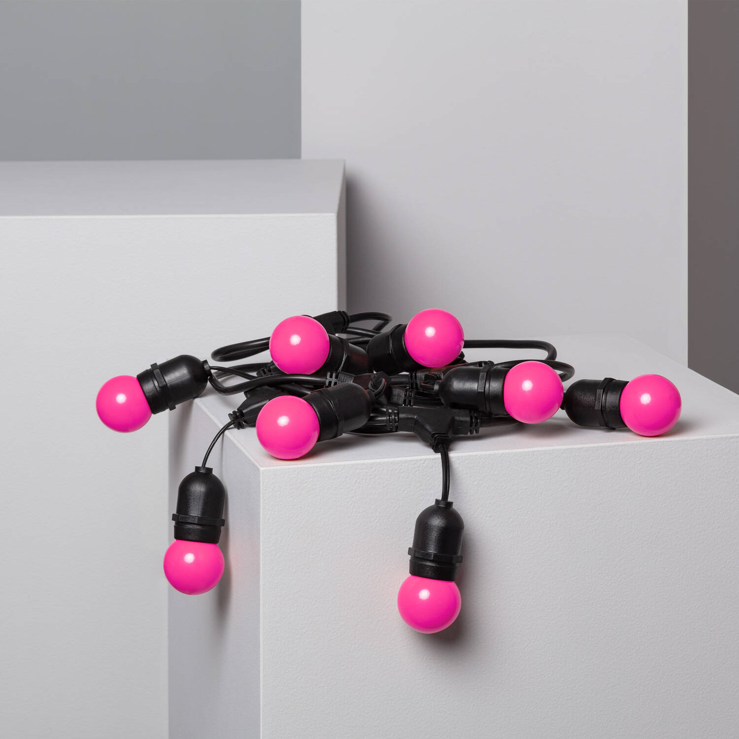 Ilumina tus espacios exteriores con esta guirnalda de bombillas LED E27 de 5,5 metros. Con 8 puntos de luz en vibrante color rosa, ofrece un ambiente cálido y festivo, ideal para terrazas, jardines o eventos al aire libre. Su diseño resistente en ABS y protección IP65 garantiza durabilidad y funcionamiento óptimo bajo condiciones climáticas adversas, soportando temperaturas desde -20 °C hasta 50 °C. Funciona con una tensión de 220-240V AC y cuenta con certificaciones CE, RoHS y UKCA, asegurando calidad y seguridad. Incluye bombillas con una vida útil de hasta 40,000 horas, aportando eficiencia y larga duración. Perfecta para crear ambientes únicos con un toque moderno y colorido.