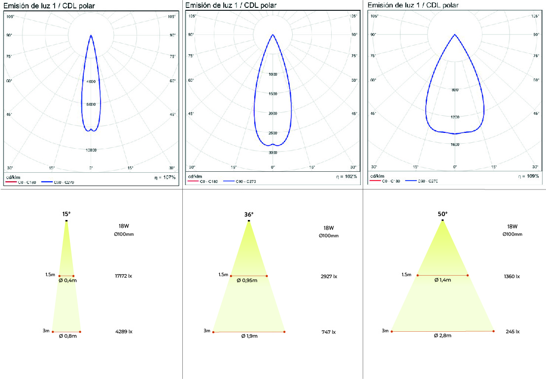 Especificaciones y datos fotométricos