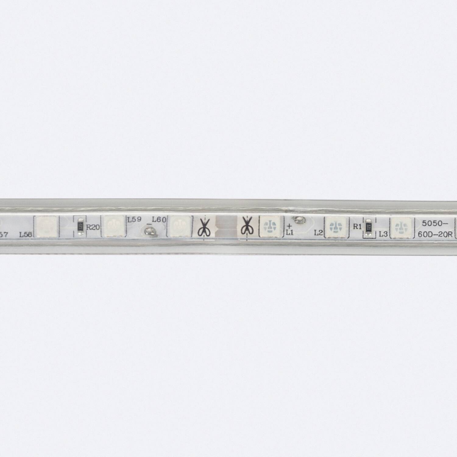 Tira LED RGB 220V SMD 60 LED/m 10W/m Ancho 16mm Corte 100cm IP65 con Mando IR a Medida
