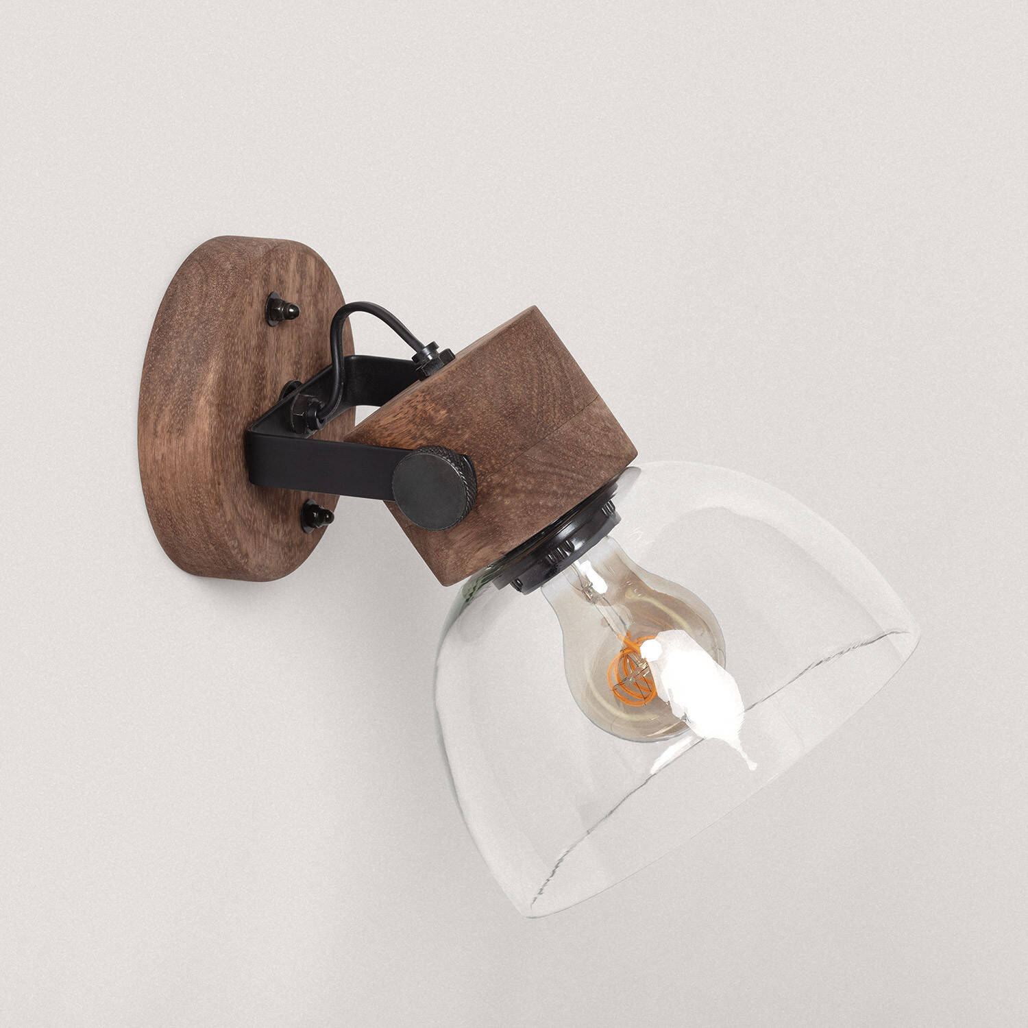La lámpara de pared Dallas Glass de ILUZZIA combina la calidez de la madera natural con la elegancia del cristal transparente, creando un diseño sofisticado y atemporal. Su estructura de madera maciza aporta un toque rústico y acogedor, mientras que la tulipa de cristal permite una difusión clara y directa de la luz. Compatible con bombillas E27 de hasta 40W, es ideal para ambientes interiores que buscan una iluminación funcional y decorativa. Su montaje en superficie y la certificación CE y RoHS garantizan seguridad y calidad. Además, soporta temperaturas de trabajo desde -20 °C hasta 50 °C, adaptándose a distintos entornos. Con tres años de garantía, es una opción perfecta para quienes valoran diseño y durabilidad.