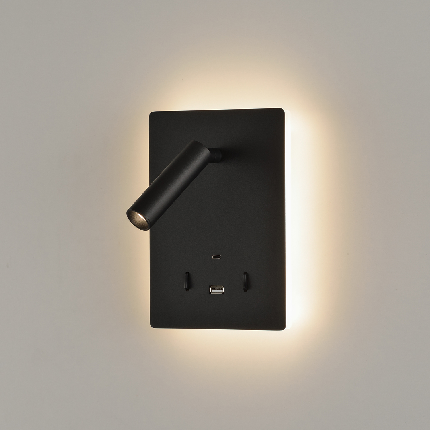 Manat Aplique 16/3568 Negro Texturado, LED 5W 3000K 415lm + 3W 3000K 285lm, CRI90 CL.I, Dos interruptores, Con USB, USB-C, Orientable