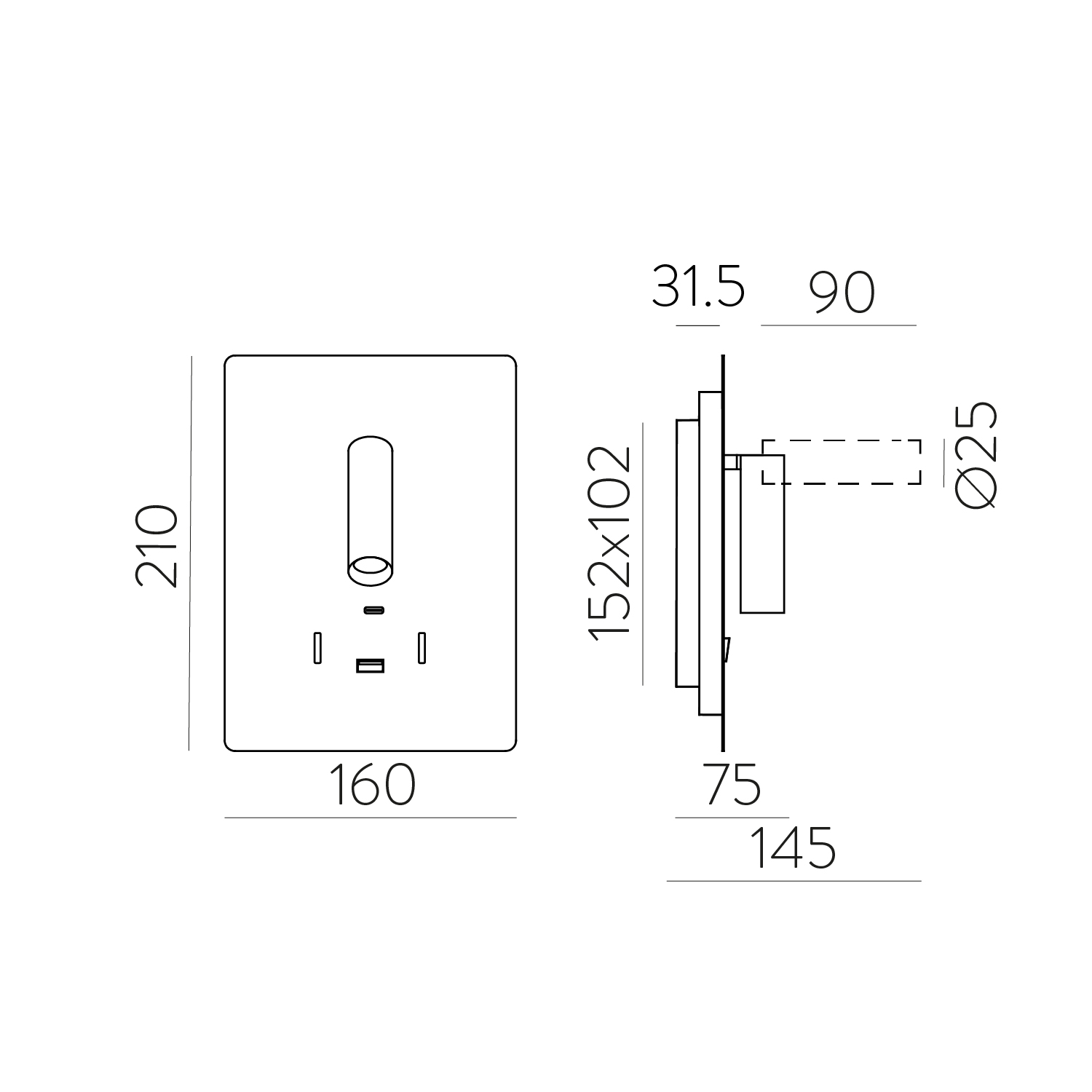 Manat Aplique 16/3568 Blanco Texturado, LED 5W 3000K 415lm + 3W 3000K 285lm, CRI90 CL.I, Dos interruptores, Con USB, USB-C, Orientable