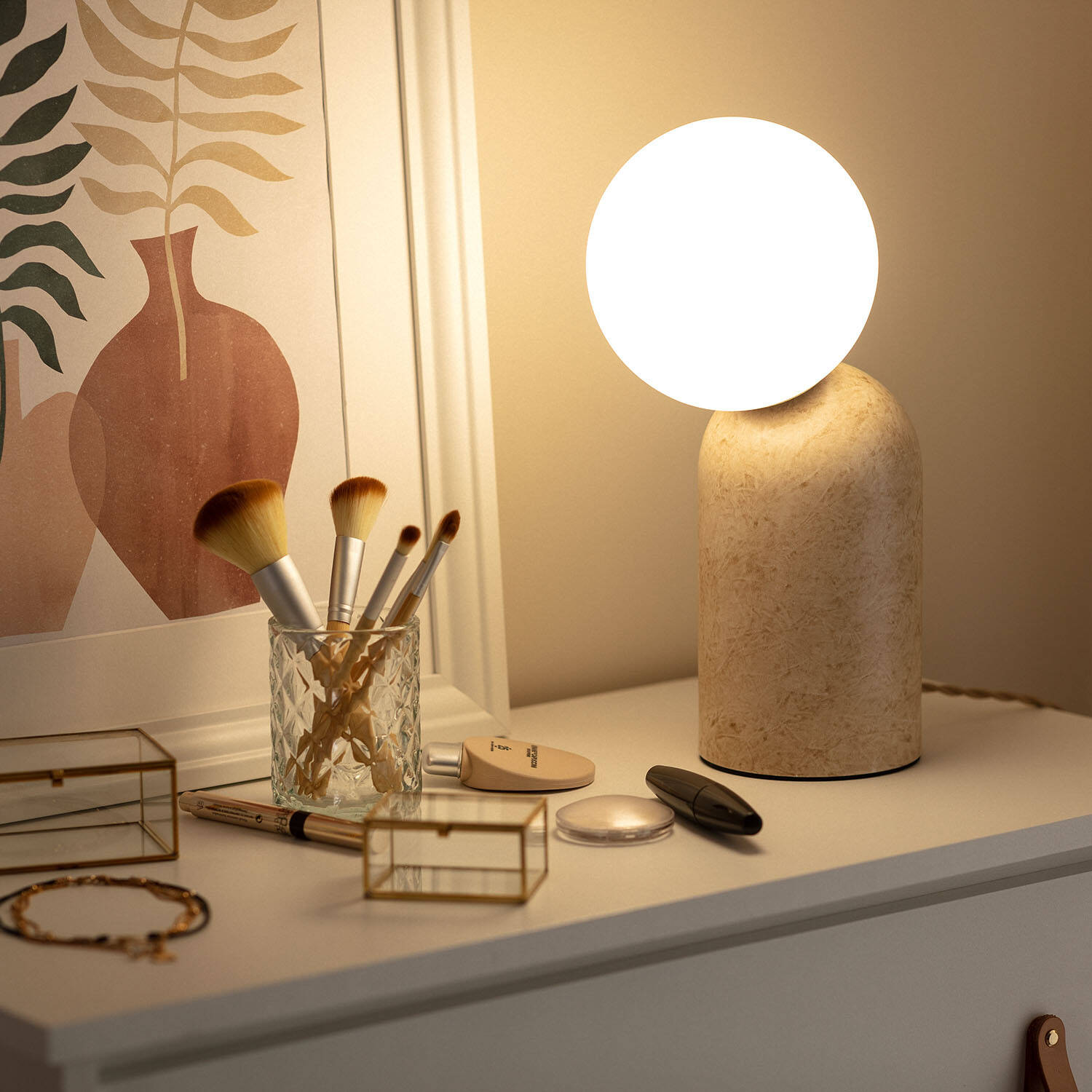 La lámpara de mesa Metal Society destaca por su diseño moderno y elegante, con una base metálica en tono beige que aporta calidez y sofisticación a cualquier espacio interior. Su pantalla esférica opalina difunde la luz de manera suave y homogénea, creando un ambiente acogedor. Funciona con bombillas E14 (no incluidas), soportando una potencia máxima de 20 W, ideal para iluminar escritorios, mesitas o rincones decorativos. Cuenta con interruptor integrado para un uso cómodo y seguro, y está certificada con CE, RoHS y UKCA, garantizando calidad y seguridad. Su protección IP20 la hace apta para interiores, y ofrece una garantía de 3 años, asegurando durabilidad y confianza. Perfecta para aportar estilo y funcionalidad a tu hogar.
