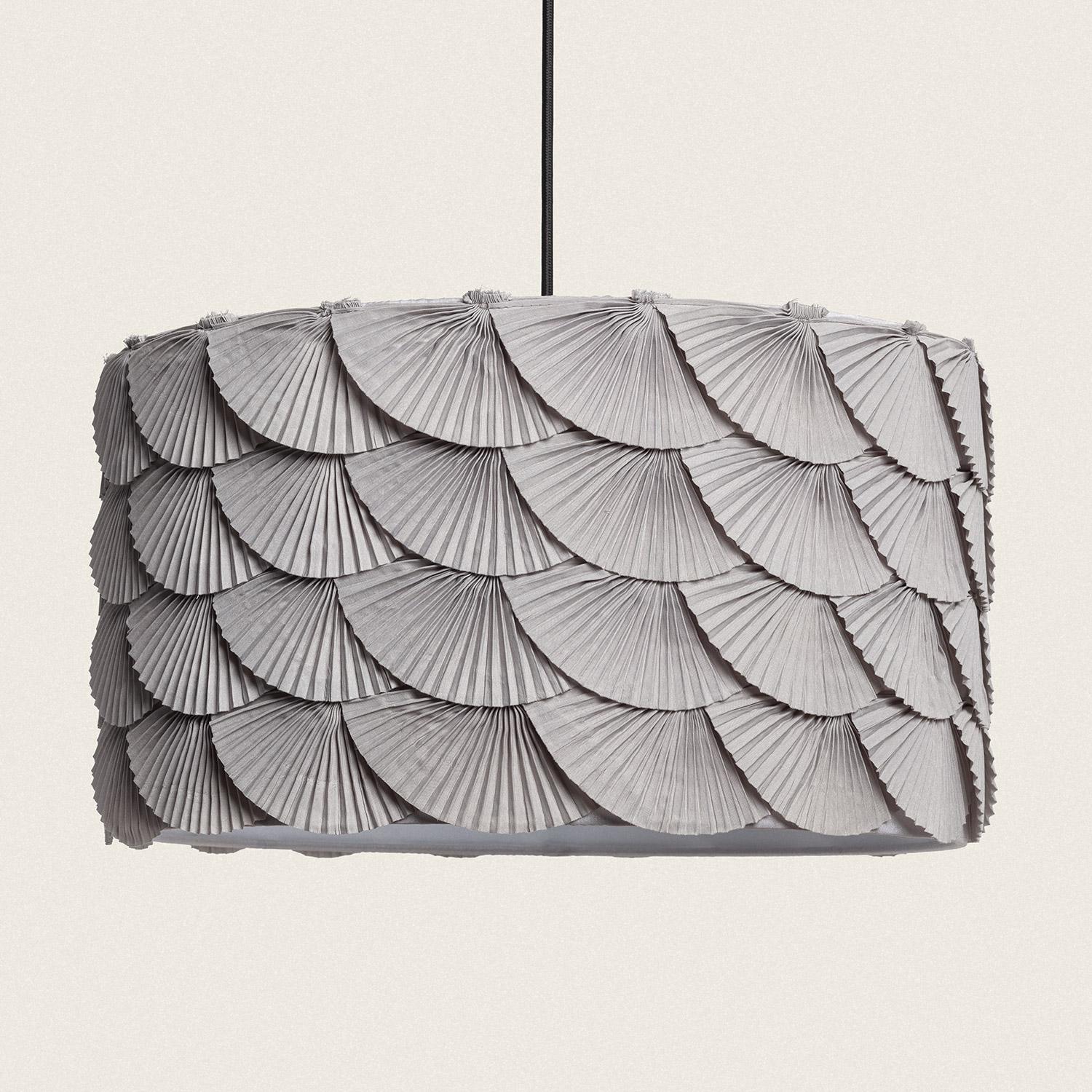 La lámpara colgante Tela Anabela es una pieza única que combina diseño y funcionalidad. Su pantalla está elaborada con capas superpuestas de tela gris, creando un efecto visual que recuerda a escamas o abanicos, aportando textura y elegancia a cualquier estancia interior. Diseñada para soportar temperaturas de -20 °C a 50 °C, garantiza durabilidad y resistencia en ambientes domésticos. Compatible con bombillas E27 y con protección IP20, esta lámpara colgante ofrece una iluminación cálida y acogedora. Su instalación colgante y su acabado en tonos neutros la convierten en una opción ideal para salones, comedores o dormitorios que buscan un toque sofisticado y contemporáneo. Además, cuenta con certificado CE y una garantía de 3 años.