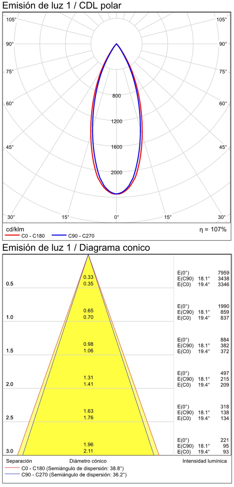 Especificaciones y datos fotométricos