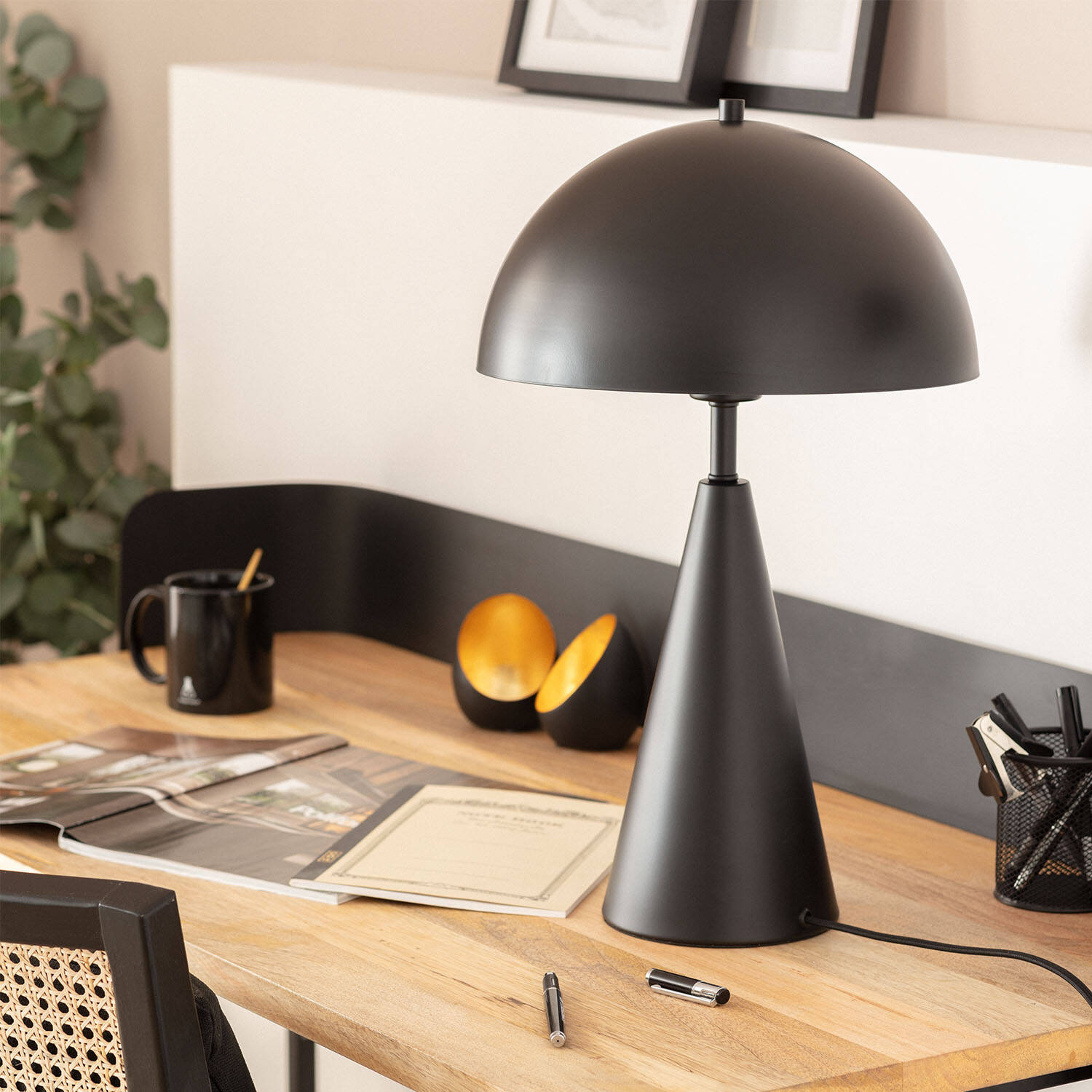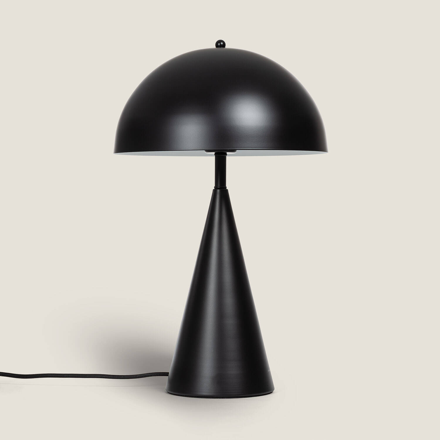 La lámpara de mesa Metal Shimo destaca por su diseño minimalista y elegante en color negro, fabricada en aluminio resistente. Su base cónica y pantalla semiesférica aportan un toque moderno y sofisticado a cualquier espacio interior. Funciona con bombillas E27 (no incluidas) de hasta 40 W, ofreciendo una iluminación focal ideal para escritorios o mesitas. Incorpora interruptor para un uso cómodo y está certificada con CE, RoHS y UKCA, garantizando calidad y seguridad. Su protección IP20 la hace apta para interiores, y su rango de temperatura de trabajo entre -20 °C y 50 °C asegura durabilidad. Perfecta para ambientes contemporáneos que buscan funcionalidad y estilo en un solo producto. Además, cuenta con 3 años de garantía.