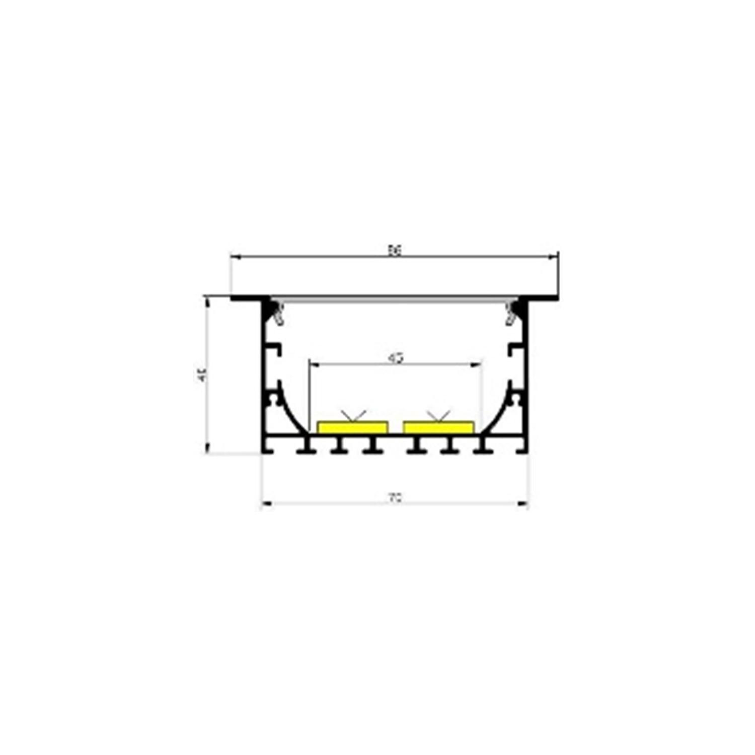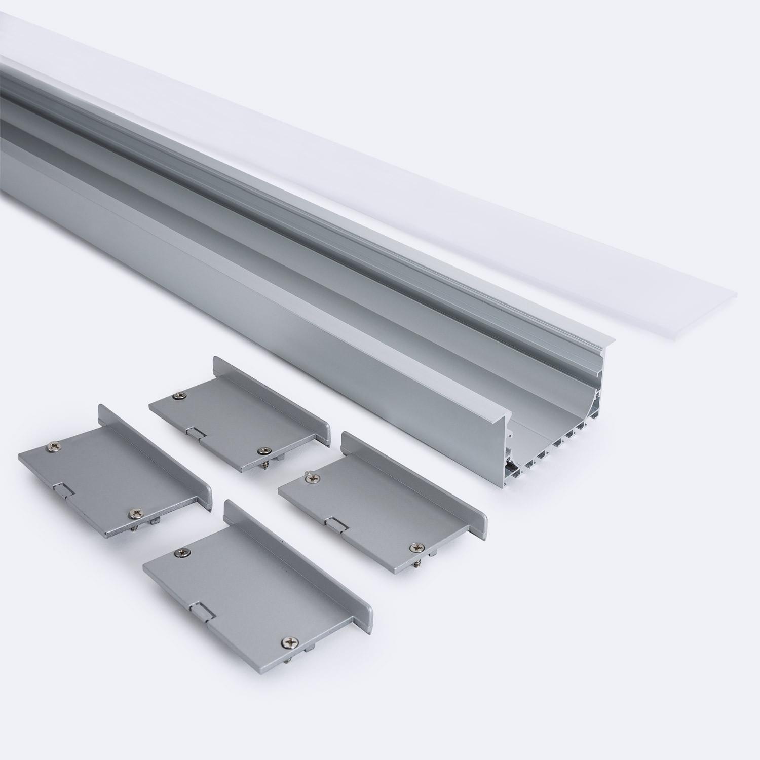 Perfil Aluminio Empotrable para Tiras LED hasta 45 mm con Tapa Continua