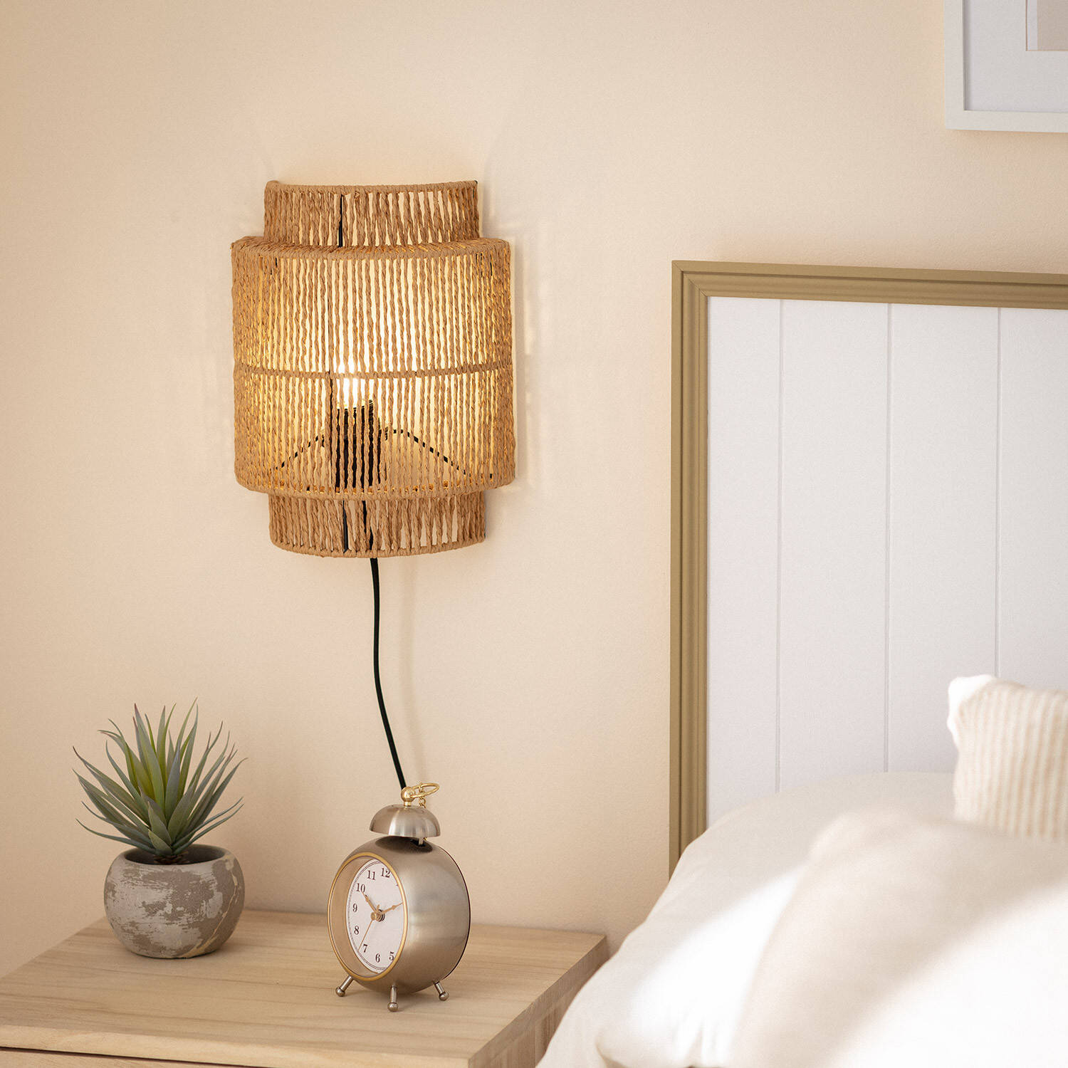 El Aplique de Pared de Ratán Kirito es una pieza decorativa que aporta calidez y estilo natural a cualquier espacio interior. Fabricado con ratán en color natural, su diseño artesanal crea un ambiente acogedor y elegante. Cuenta con un casquillo E27 que permite instalar bombillas de hasta 40 W (no incluidas), ofreciendo una iluminación suave y ambiental. Ideal para instalar en paredes y superficies, este aplique incluye interruptor para un uso cómodo y práctico. Su protección IP20 lo hace adecuado para interiores, funcionando en un rango de temperatura de -20 °C a 50 °C. Con certificaciones CE, RoHS y UKCA, garantiza calidad y seguridad, además de una garantía de 3 años para mayor tranquilidad.