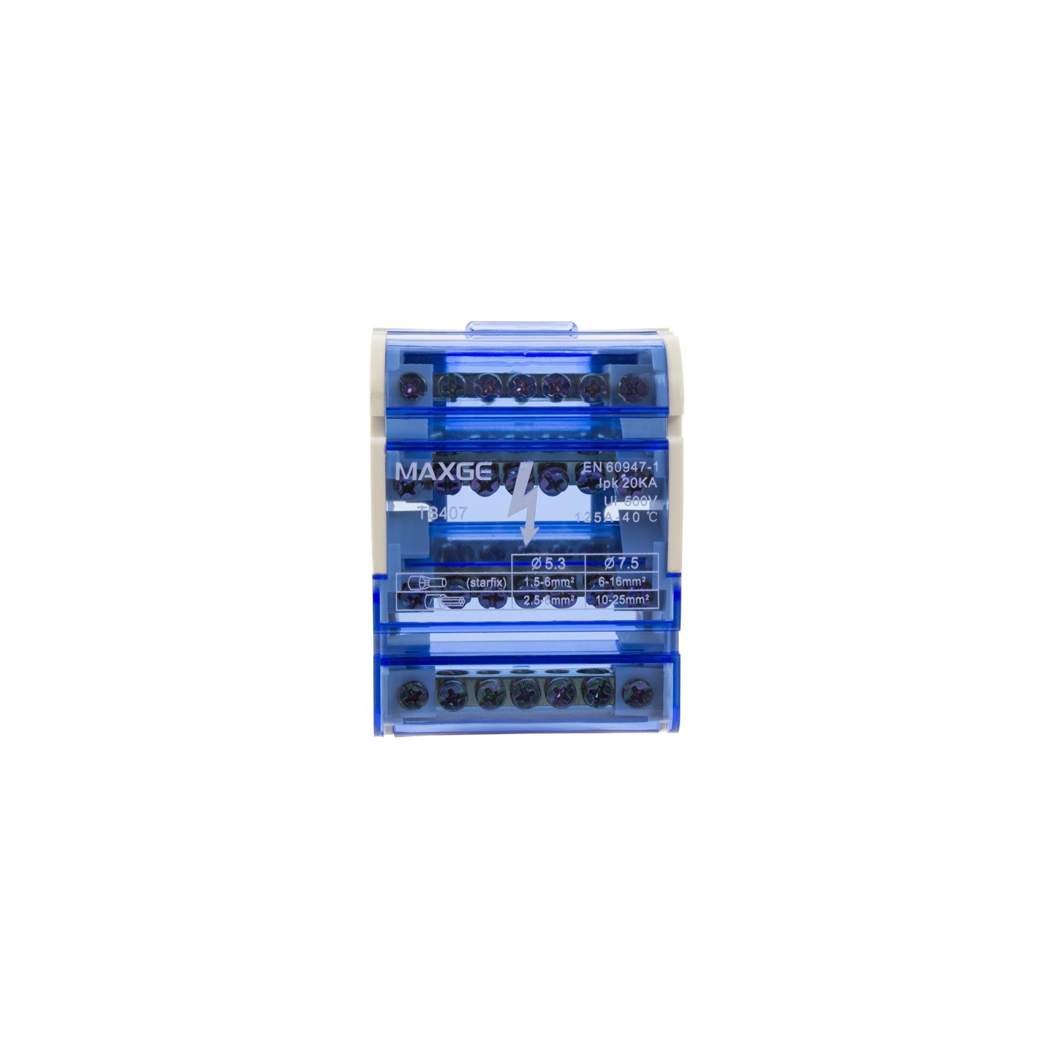 El Repartidor de Energía 4P 125A MAXGE es un dispositivo tetrapolar diseñado para distribuir corriente eléctrica de manera segura y eficiente en instalaciones interiores. Con una intensidad máxima de 125 amperios y frecuencia de 50-60 Hz, garantiza un rendimiento óptimo en sistemas eléctricos. Su carcasa con protección IP20 ofrece resistencia adecuada contra el polvo, asegurando durabilidad y fiabilidad. Este repartidor cuenta con conexiones de 4x7 y está certificado bajo normativas CE, RoHS y UKCA, lo que avala su calidad y cumplimiento de estándares europeos. Además, pertenece a la serie TB4 de MAXGE, con una garantía de 3 años, ideal para profesionales que buscan un componente robusto y seguro para sus proyectos eléctricos.
