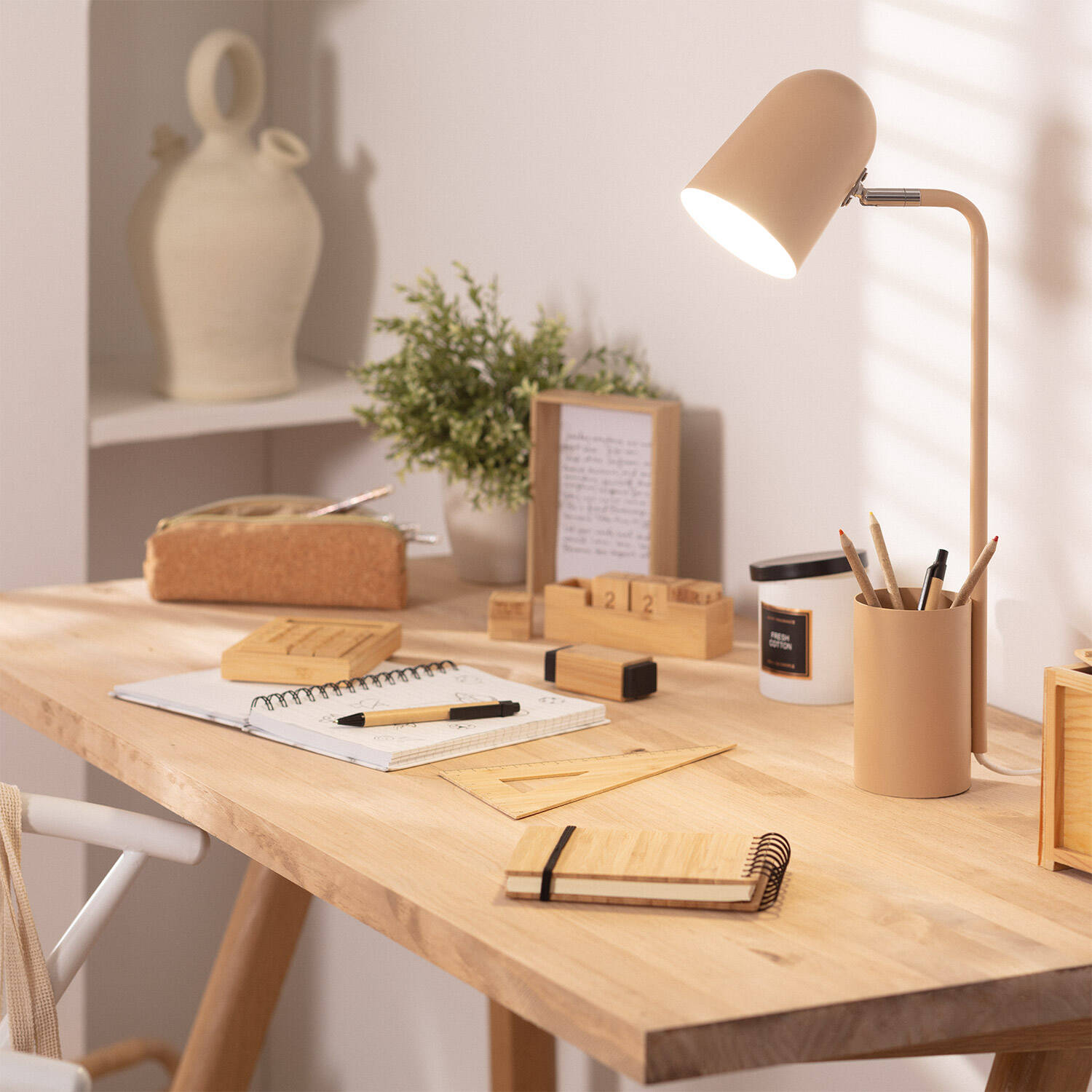 La lámpara flexo de escritorio Waal destaca por su diseño moderno y funcional en metal con acabado camel, ideal para cualquier espacio de trabajo o estudio. Su estructura incorpora un portalápices integrado, aportando organización y practicidad al escritorio. Compatible con bombillas E14 de hasta 40W, ofrece una iluminación puntual perfecta para tareas que requieren concentración. Su interruptor facilita el encendido y apagado, mientras que su resistencia a temperaturas de -20 °C a 50 °C garantiza durabilidad. Con certificaciones CE, RoHS y UKCA, esta lámpara combina estilo y seguridad. Además, cuenta con una garantía de 3 años, asegurando calidad y confianza en su uso diario. Perfecta para ambientes interiores y montaje en superficie.