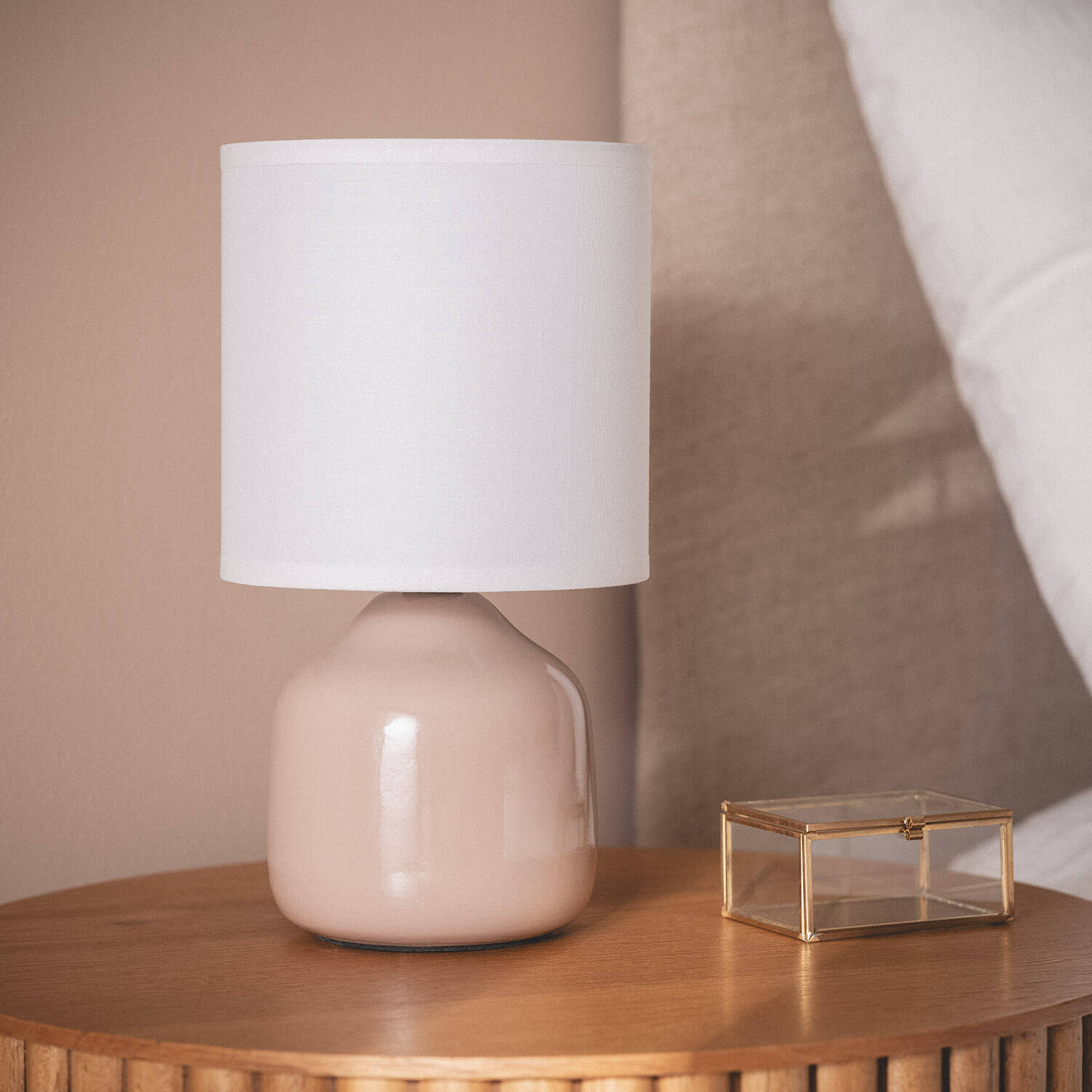 La lámpara de mesa Cerámica Maya destaca por su base de cerámica en un delicado tono rosa pastel, que aporta un toque suave y elegante a cualquier estancia interior. Su diseño compacto y moderno se complementa con una pantalla blanca cilíndrica que difunde la luz de forma armoniosa, creando ambientes acogedores. Compatible con bombillas E14 de hasta 20 W (no incluidas), ofrece funcionalidad y estilo. Su cable textil con interruptor integrado facilita el encendido y apagado. Certificada con CE y RoHS, garantiza calidad y seguridad. Ideal para dormitorios, salones o espacios de lectura, esta lámpara combina estética y practicidad con una garantía de 3 años, soportando temperaturas de -20 °C a 50 °C.