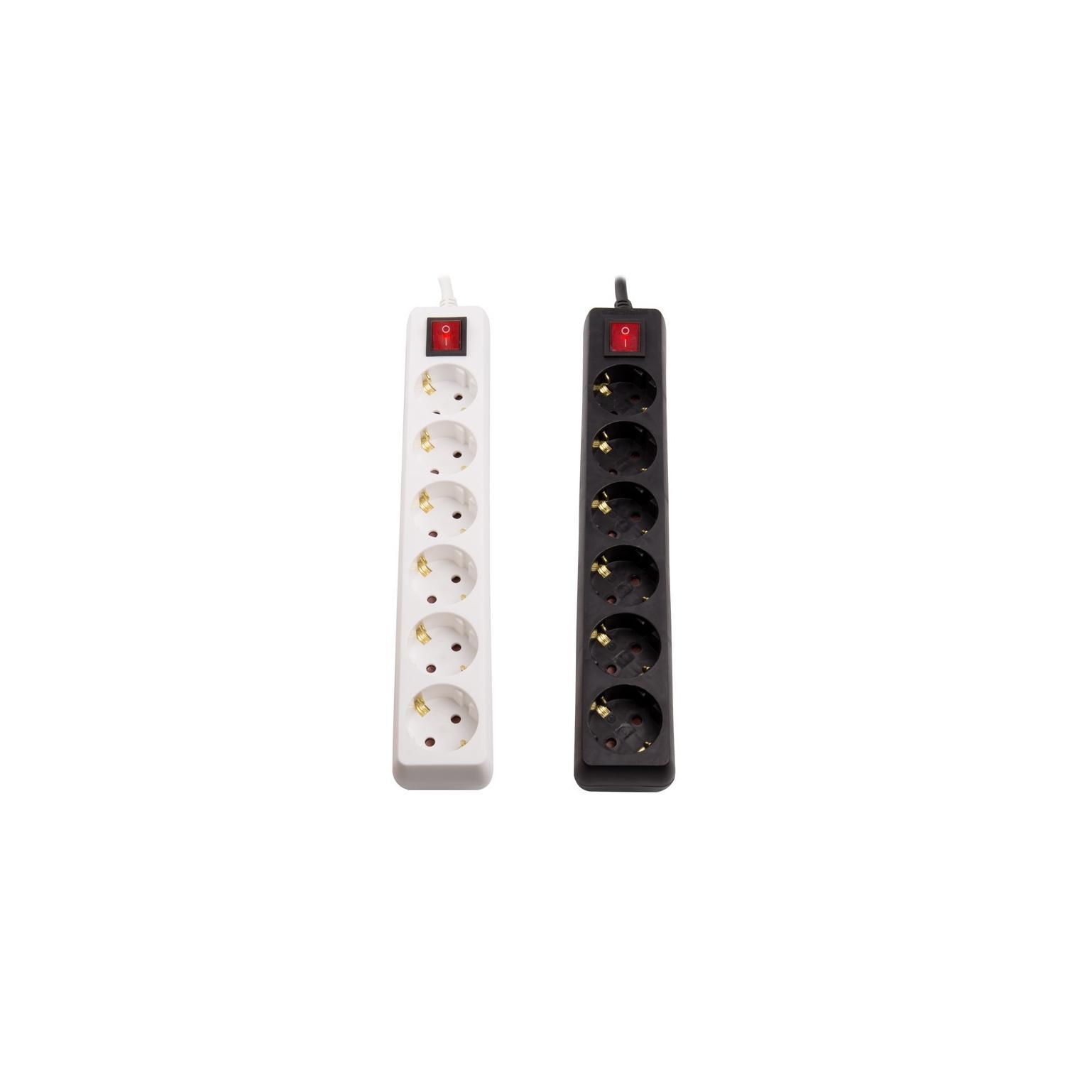 Esta base múltiple de 6 enchufes tipo F Schuko es ideal para ampliar tus puntos de conexión eléctrica en interiores. Con un cable de 1,5 metros, ofrece comodidad y flexibilidad para conectar varios dispositivos simultáneamente. Fabricada en PVC resistente, garantiza durabilidad y seguridad, soportando una potencia máxima de 3680 W y una intensidad de corriente de 16 Amperios. Su diseño compacto y funcional incluye un interruptor de encendido/apagado para mayor control y ahorro energético. Apta para ambientes con temperaturas entre -20 °C y 50 °C, cuenta con certificaciones CE, RoHS y TÜV, que avalan su calidad y cumplimiento normativo. Disponible en blanco y negro, es una solución práctica y segura para el hogar o la oficina.