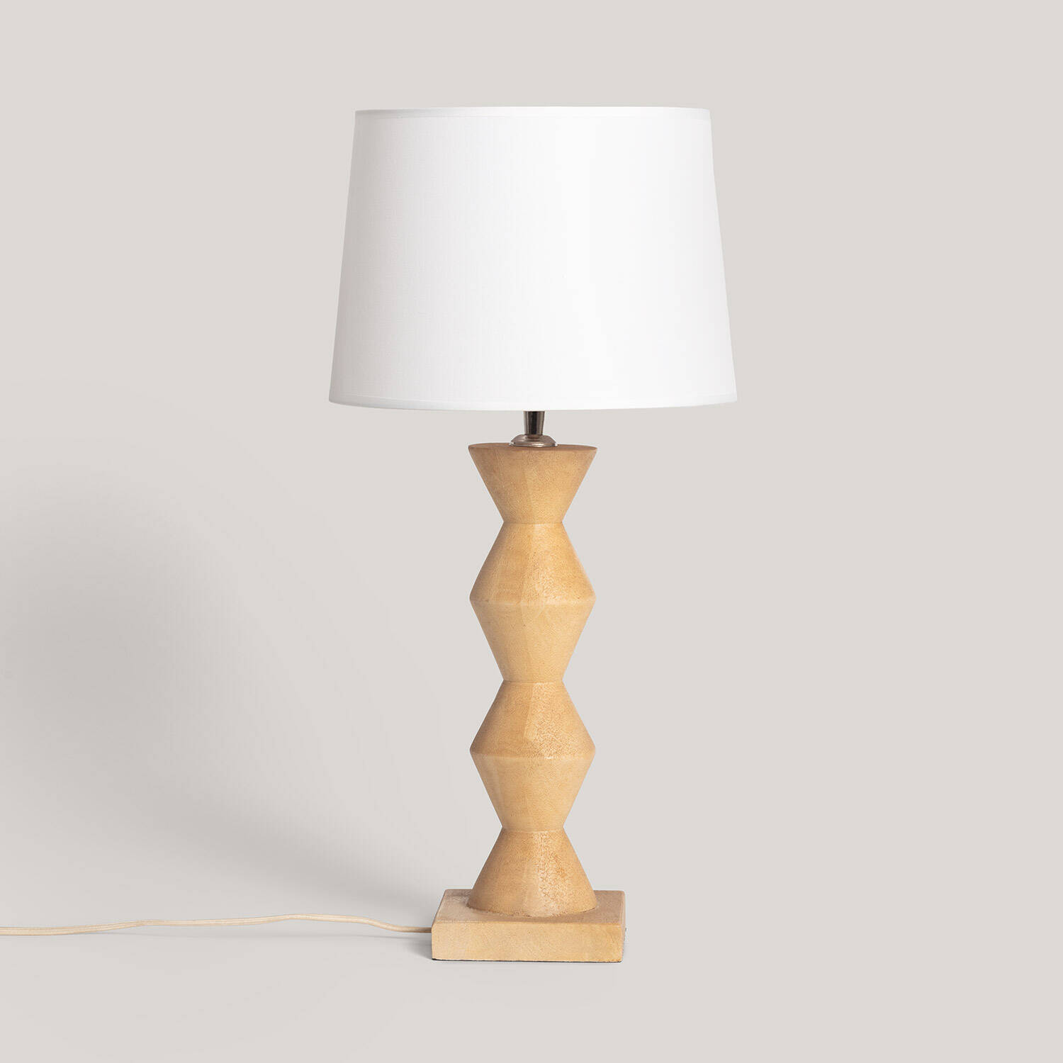 La lámpara de mesa Akesh II combina elegancia y naturalidad con su estructura de madera tallada en formas geométricas y pantalla blanca que aporta un toque moderno y cálido a cualquier espacio interior. Su casquillo E27 permite bombillas de hasta 40W, ofreciendo una iluminación funcional y acogedora. Cuenta con interruptor integrado para un manejo sencillo y está certificada bajo normas CE, RoHS y UKCA, garantizando seguridad y calidad. Ideal para salones, dormitorios o estudios, esta lámpara destaca por su diseño atemporal y materiales naturales, aportando calidez y estilo a tu decoración. Además, incluye una garantía de 3 años para mayor tranquilidad. No incluye bombilla, permitiendo elegir la luz que mejor se adapte a tus necesidades.