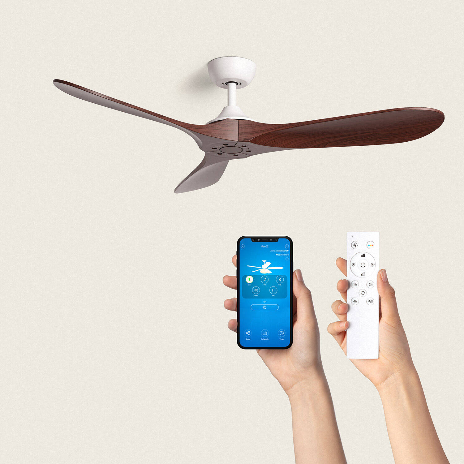 El ventilador de techo silencioso Spetses combina diseño y funcionalidad con sus aspas de madera de nogal y estructura blanca. Con un diámetro de 132 cm y motor DC de 55 W, ofrece un rendimiento eficiente y silencioso, con niveles de ruido entre 24 y 42 dB. Cuenta con 6 velocidades ajustables (102 a 201 RPM) y modo verano/invierno para optimizar el confort durante todo el año. Su control remoto facilita su manejo a distancia, ideal para estancias grandes de más de 20 m². Fabricado en ABS y metal, soporta temperaturas de -20 °C a 50 °C y cuenta con certificaciones CE, RoHS y UKCA, además de una garantía de 3 años. Perfecto para interiores modernos y espacios amplios.