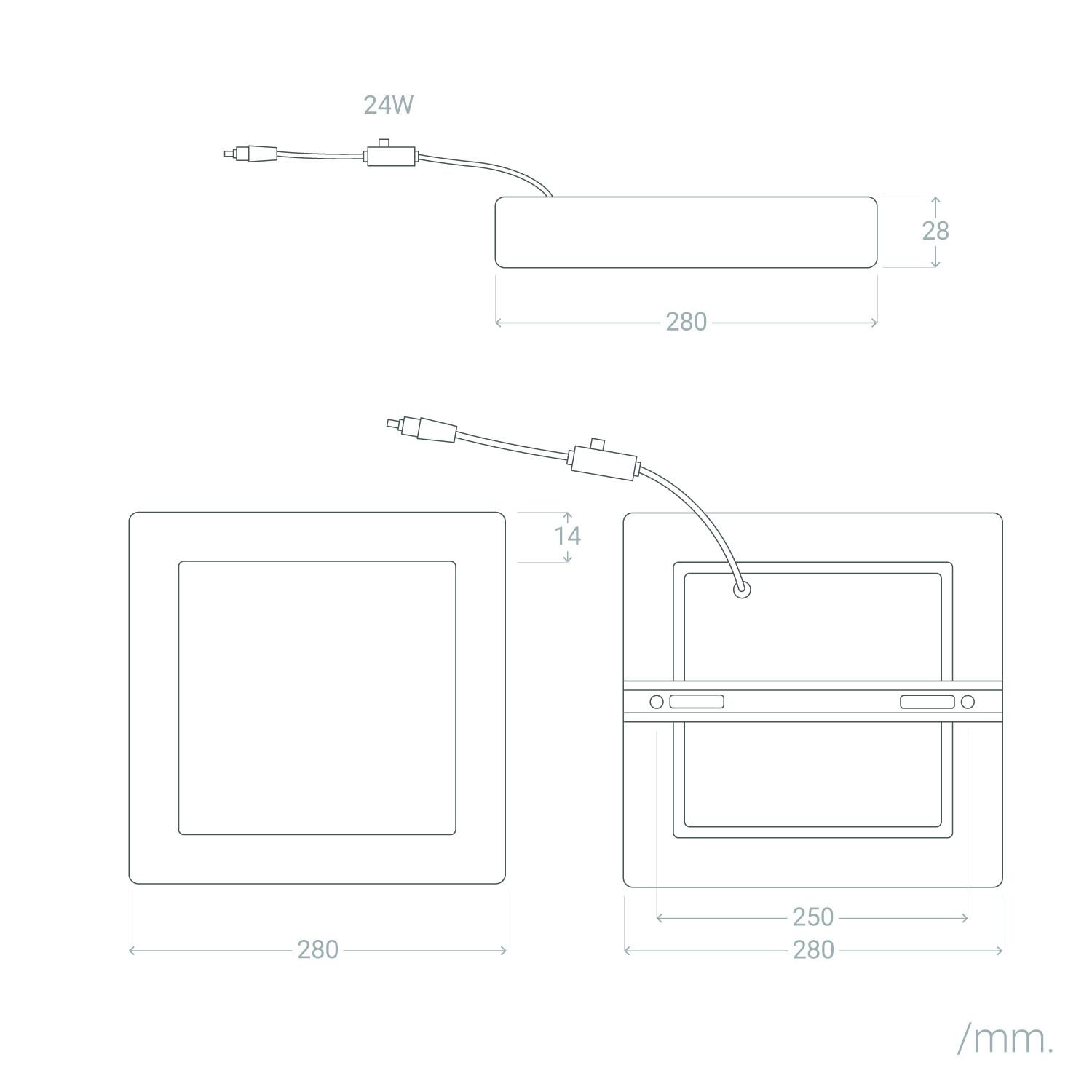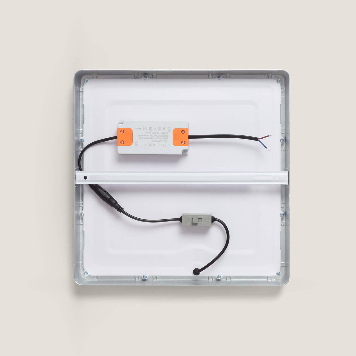 Este plafón LED cuadrado de 24W destaca por su diseño slim en aluminio plateado, ideal para instalaciones en superficie en interiores. Con unas dimensiones de 280x280 mm, ofrece una luminosidad potente de 2400 lúmenes y una eficiencia de 100 lm/W. Su temperatura de color es seleccionable entre 3000K y 6000K gracias a su función CCT con regulador SwitchDimm, permitiendo ajustar la intensidad en tres niveles (10%, 50% y 100%). Resistente y duradero, soporta temperaturas de trabajo de -20 °C a 50 °C y cuenta con una vida útil de 40.000 horas. Además, dispone de certificaciones CE, RoHS y UKCA, garantizando calidad y seguridad. Perfecto para crear ambientes personalizados con luz eficiente y moderna.