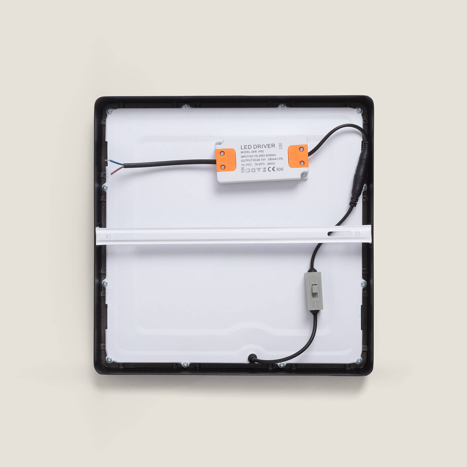 El Plafón LED Cuadrado de 24W en aluminio destaca por su diseño slim y elegante, con dimensiones de 280x280 mm y acabado en negro. Su tecnología CCT seleccionable permite ajustar la temperatura de color entre 3000K y 6000K para una iluminación personalizada, ideal para interiores. Ofrece una luminosidad de 2400 lúmenes con una eficiencia de 100 lm/W, garantizando un ambiente brillante y eficiente energéticamente. Cuenta con regulación SwitchDimm en tres niveles (10%, 50%, 100%) para adaptar la intensidad según necesidad. Su robusta estructura de aluminio asegura durabilidad y resistencia, con una vida útil de hasta 40.000 horas. Certificado CE, RoHS y UKCA, es apto para temperaturas de -20 °C a 50 °C, con protección IP20 e IK05. Garantía de 3 años.