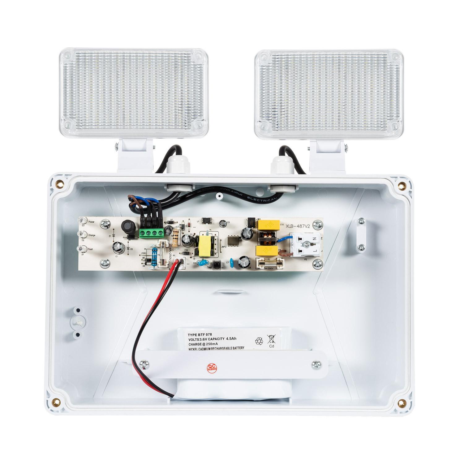 La Luz de Emergencia LED Superficie TwinSpot ofrece una potente iluminación de 400 lúmenes con una eficiencia de 6 W, ideal para instalaciones tanto interiores como exteriores. Su luz blanco frío de 6000K garantiza una visibilidad clara y nítida en situaciones de emergencia. Fabricada en ABS y PC, cuenta con protección IP65, asegurando resistencia al agua y polvo. Funciona en un rango de temperatura de -10 °C a 40 °C, con una vida útil de 40.000 horas y certificaciones CE, RoHS y UKCA que avalan su calidad y seguridad. Su diseño de superficie con dos focos ajustables proporciona una iluminación focalizada y fiable, respaldada por una garantía de 3 años. Perfecta para garantizar seguridad en cualquier espacio.