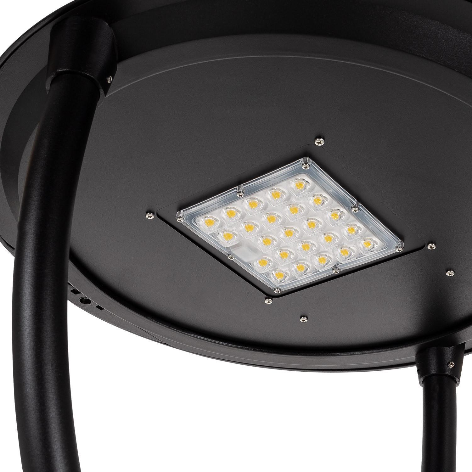 La farola LED NeoVentino de 40W es la solución ideal para alumbrado público exterior eficiente y duradero. Cuenta con 24 LEDs LUMILEDS PHILIPS 5050 que ofrecen una luminosidad de 6000 lúmenes con luz blanco cálido (2700K), creando un ambiente acogedor y seguro. Su diseño en aluminio negro combina resistencia y estética, soportando condiciones extremas desde -20 °C hasta 45 °C. Con protección IP65 e IK09, garantiza durabilidad frente a agua y golpes. Su regulación 1-10V permite ajustar la intensidad para un consumo optimizado. Además, su vida útil de 100.000 horas y 5 años de garantía aseguran una inversión fiable y sostenible. Perfecta para espacios urbanos que requieren iluminación eficiente y de alta calidad.